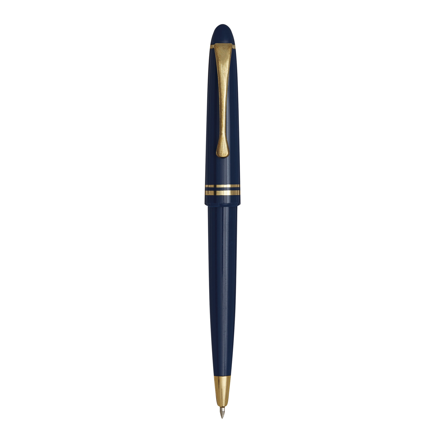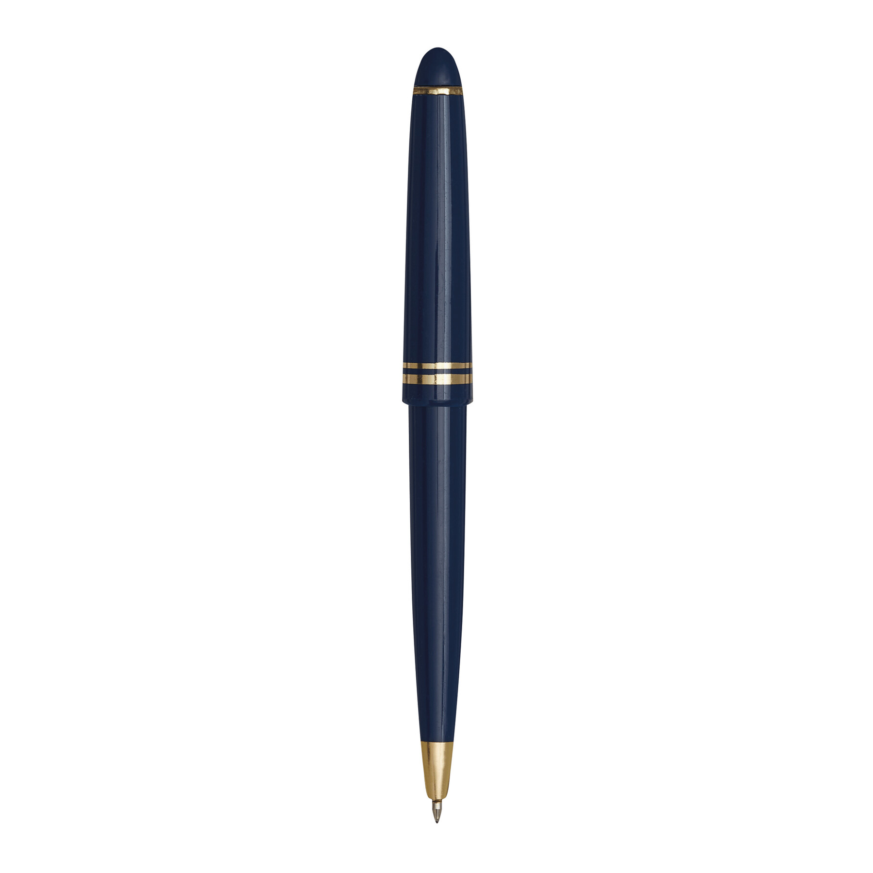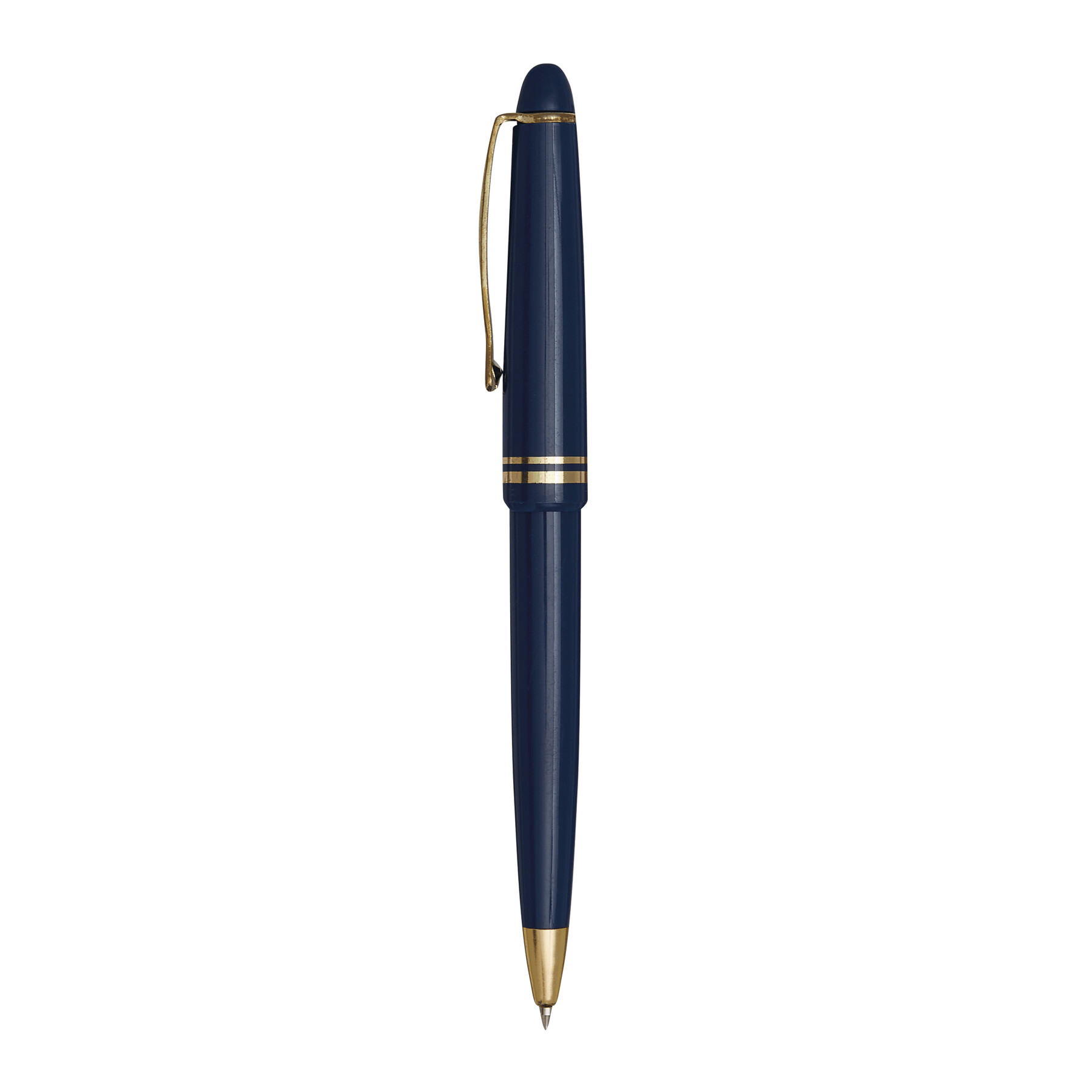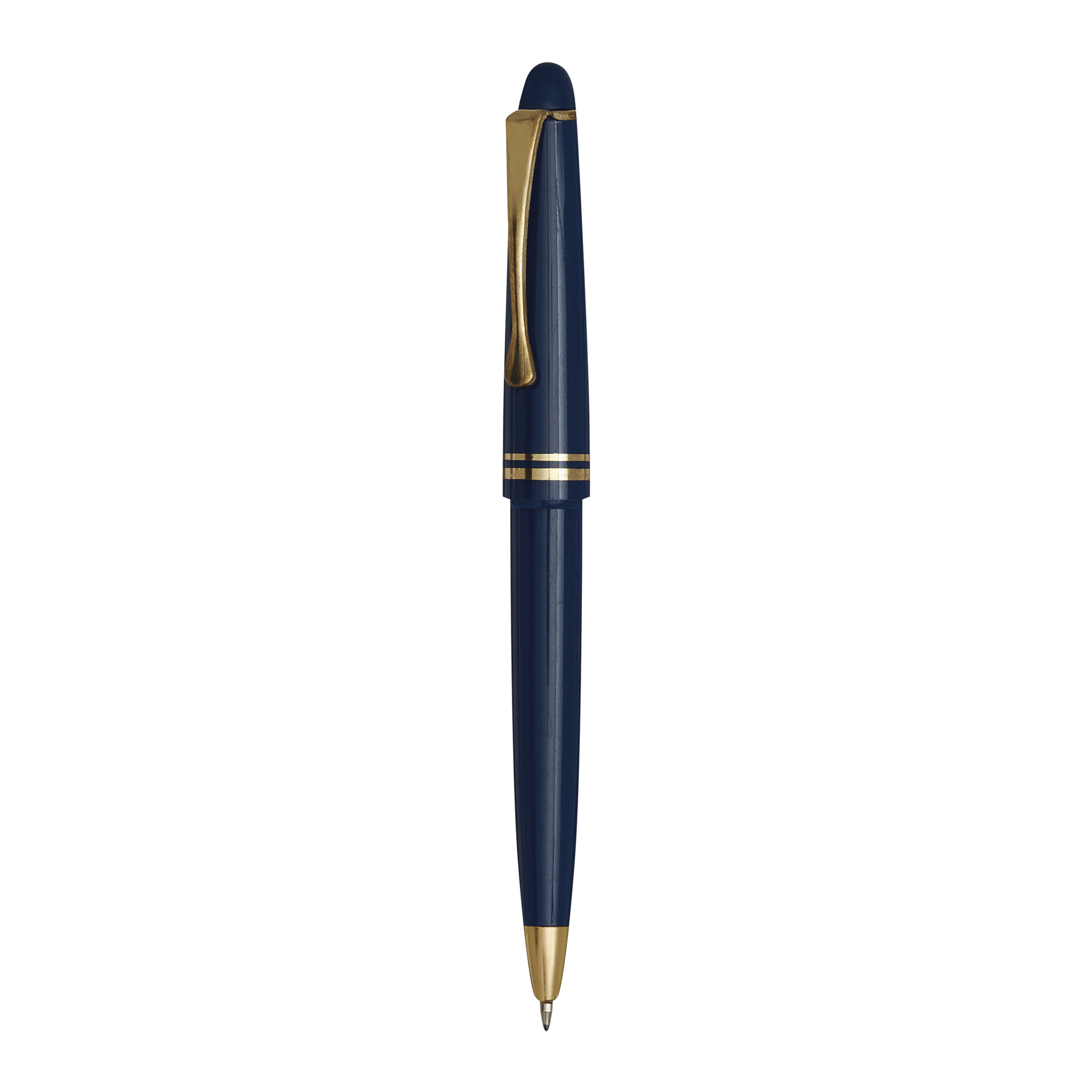Długopis CLASSIC z akcentami w złotym kolorze, z dużym wkładem z niebieskim tuszem.