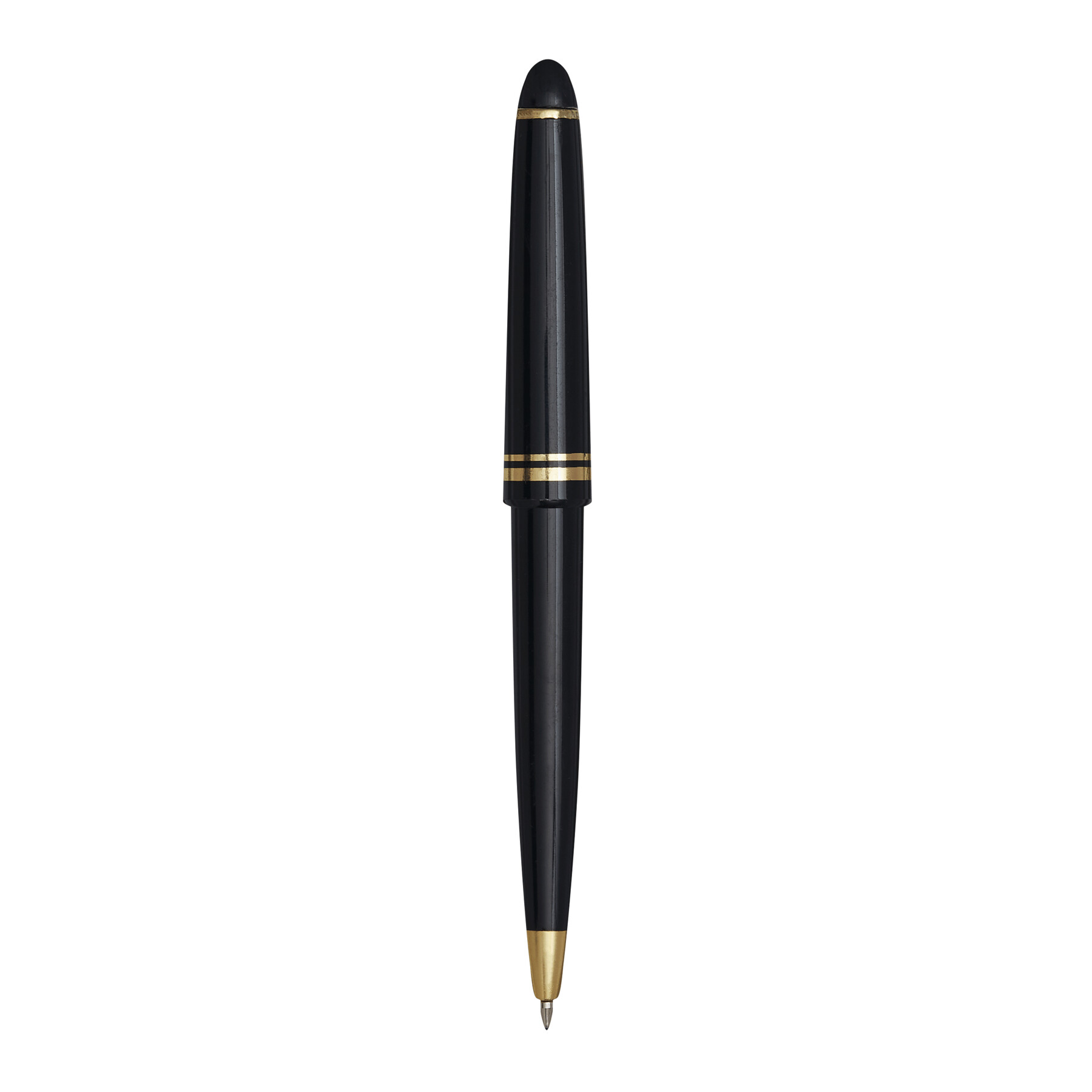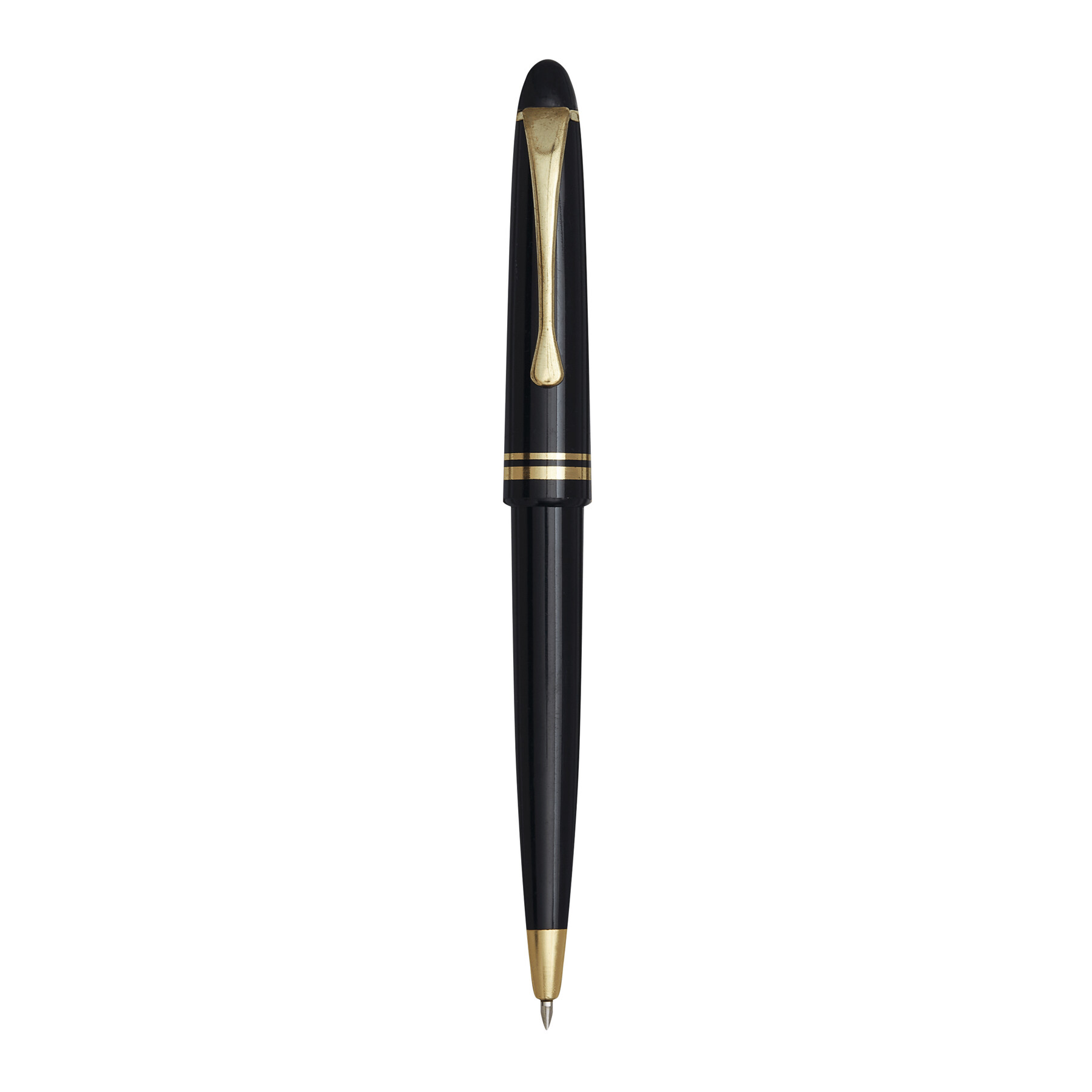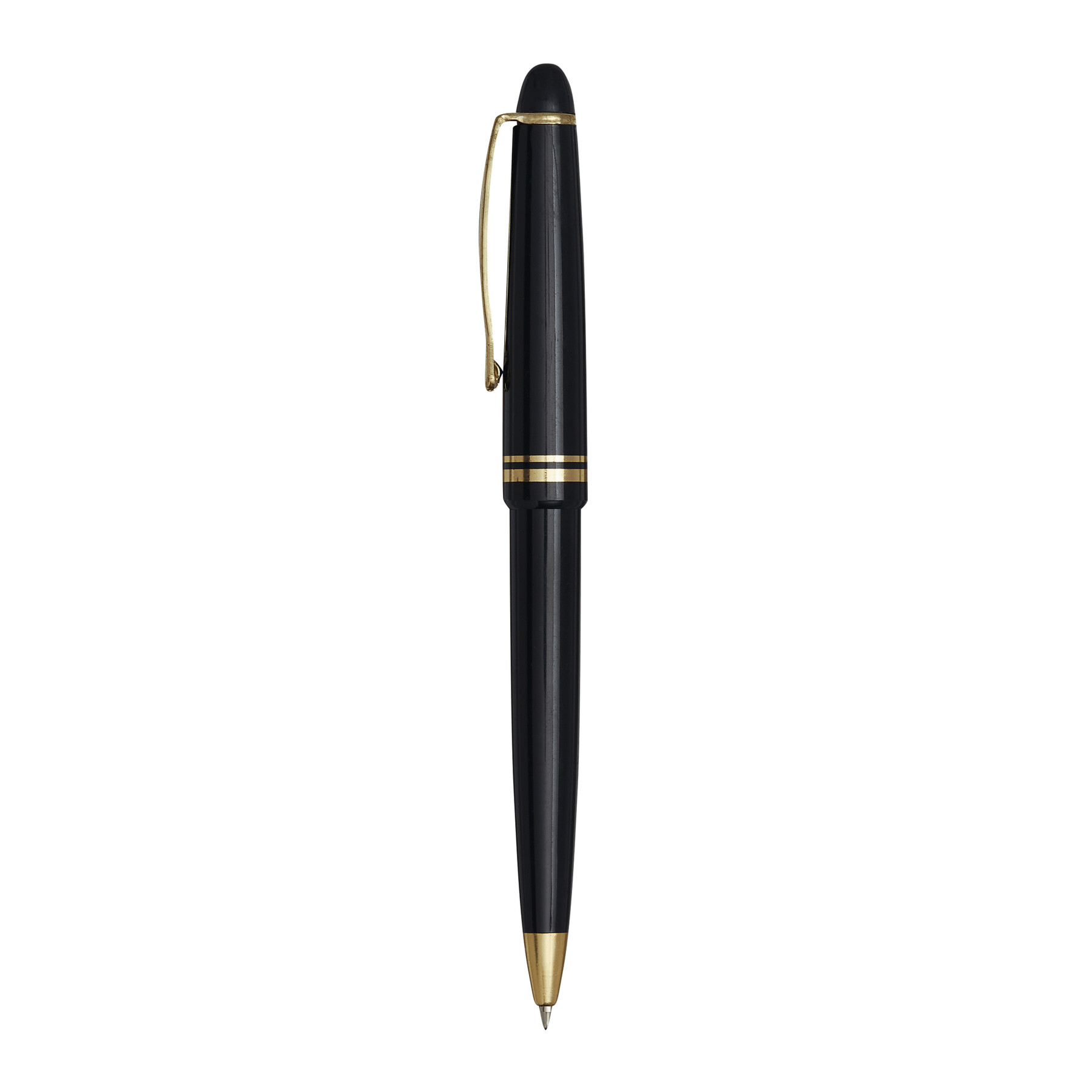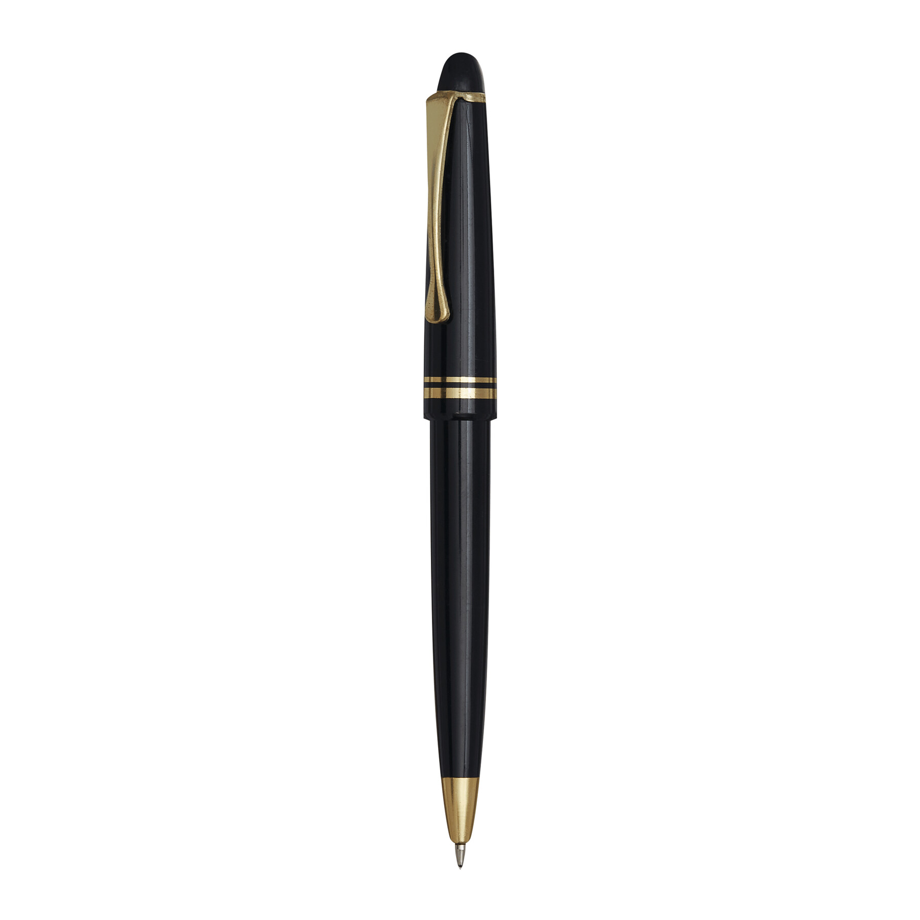 Długopis CLASSIC z akcentami w złotym kolorze, z dużym wkładem z niebieskim tuszem.