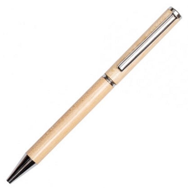 Automatyczny długopis do produkcji, którego użyto drewna klonowego jest w 100% ekologiczny. Posiada metalowe elementy, piszę na niebiesko. Długopis pakowany jest w tekturowe pudełko.