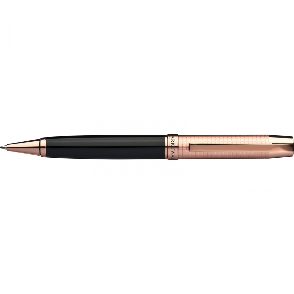 Wysokiej jakości długopis z kolekcji Mark Twain z mechanizmem obrotowym i niebieskim wkładem. Zapakowany w ozdobne, lakierowane etui.