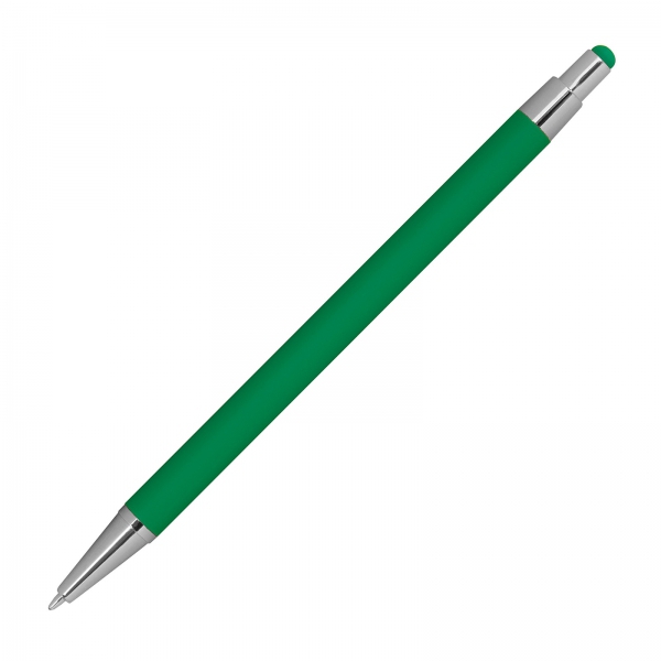 Długopis z aluminium z gumowaną powierzchnią. Posiada wkład piszący na niebiesko i końcówkę do obsługi ekranów dotykowych.