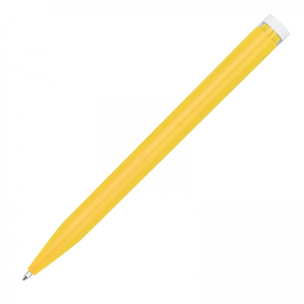 Plastikowy długopis z niebieskim wkładem i dużym białym klipsem.