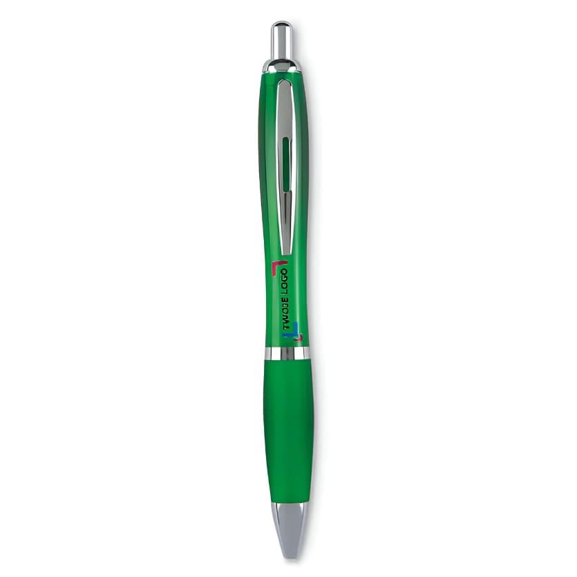 Wciskany długopis z ABS z miękkim uchwytem. Niebieski wkład.