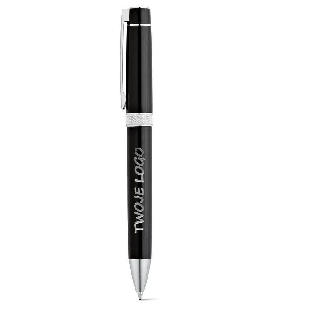 Zestaw - metalowy długopis i pióro kulkowe z mechanizmem obrotowym i klipem. Czarny tusz. Dostarczany w wyściełanym pudełku upominkowym. ø12 x 132 mm | Pudełko: 170 x 70 x 30 mm