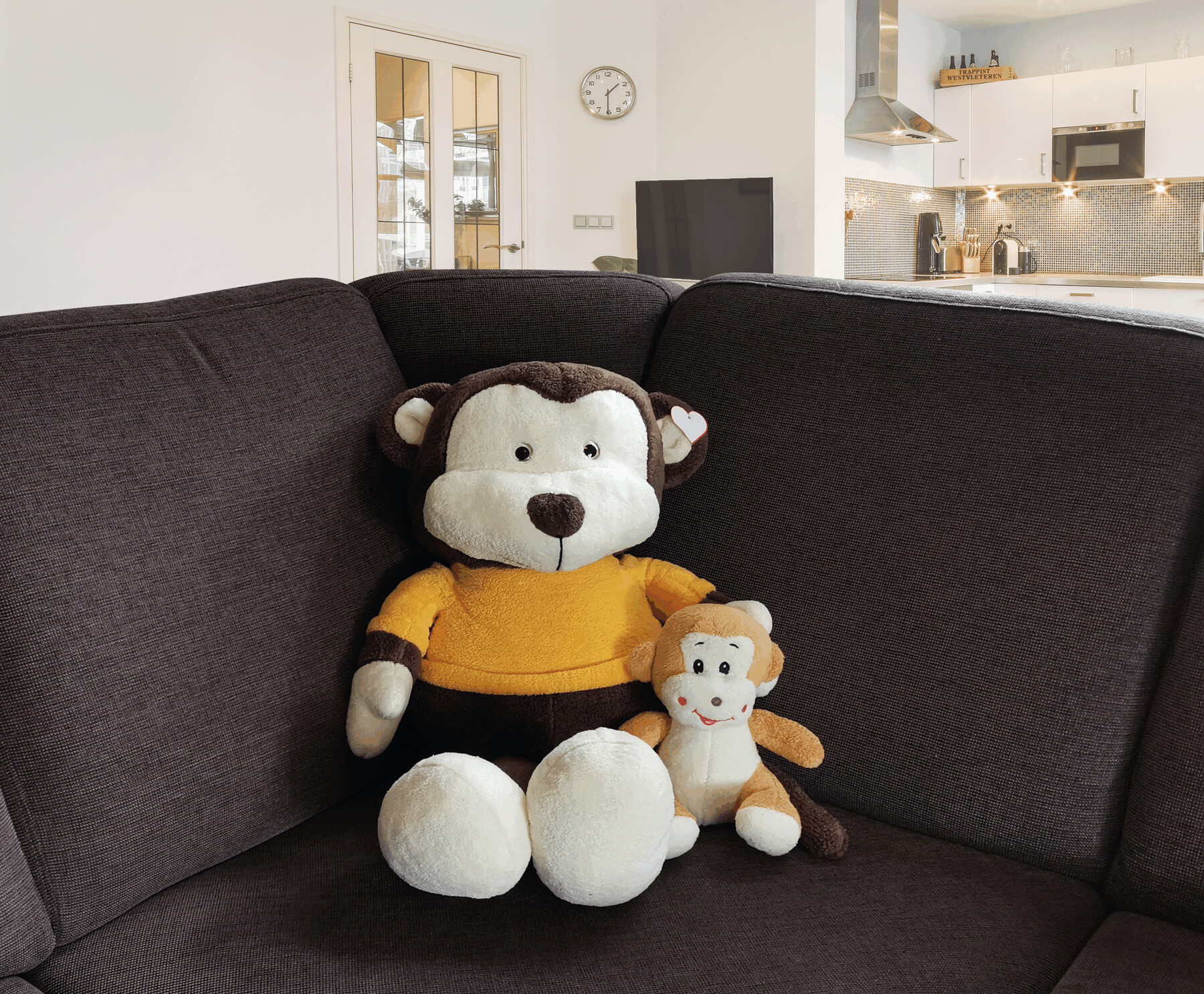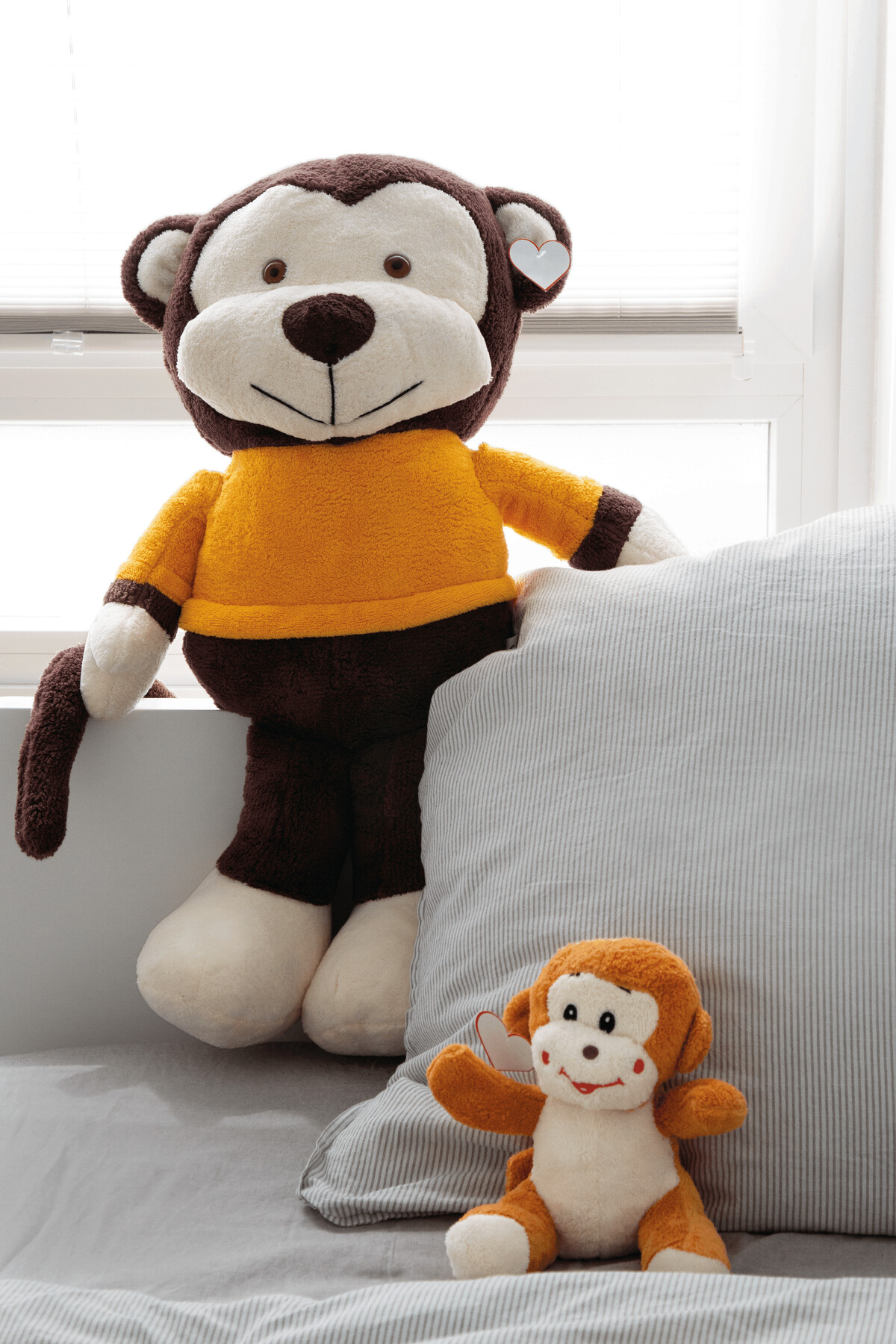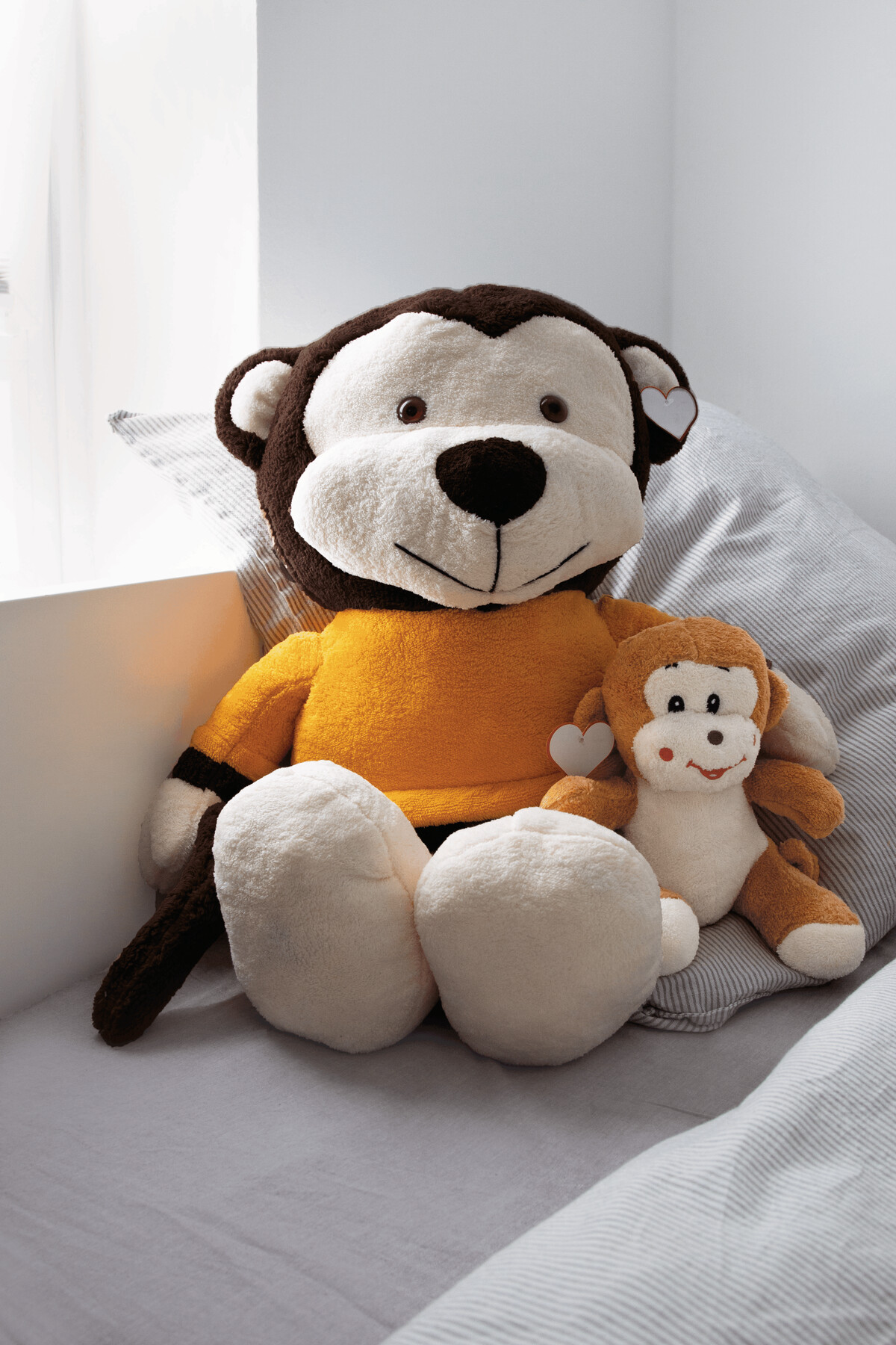 Duża pluszowa małpka BATU z miękkim futerkiem i serduszkiem do nadruku. Wyprodukowana w Europie.