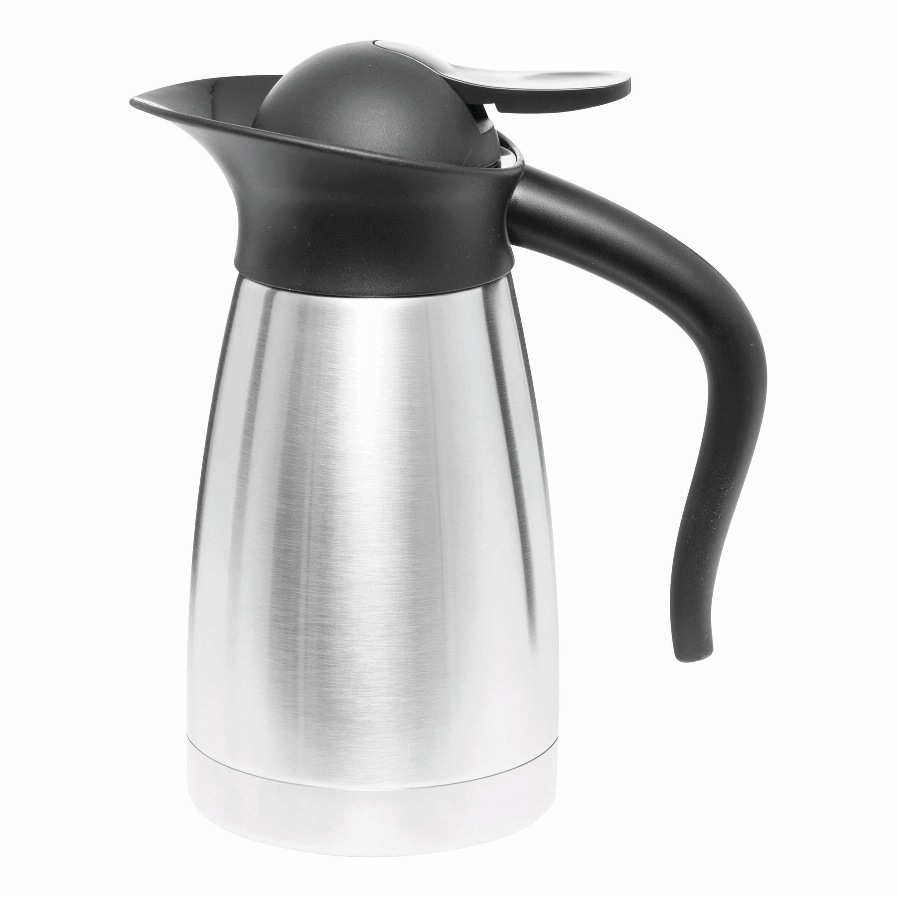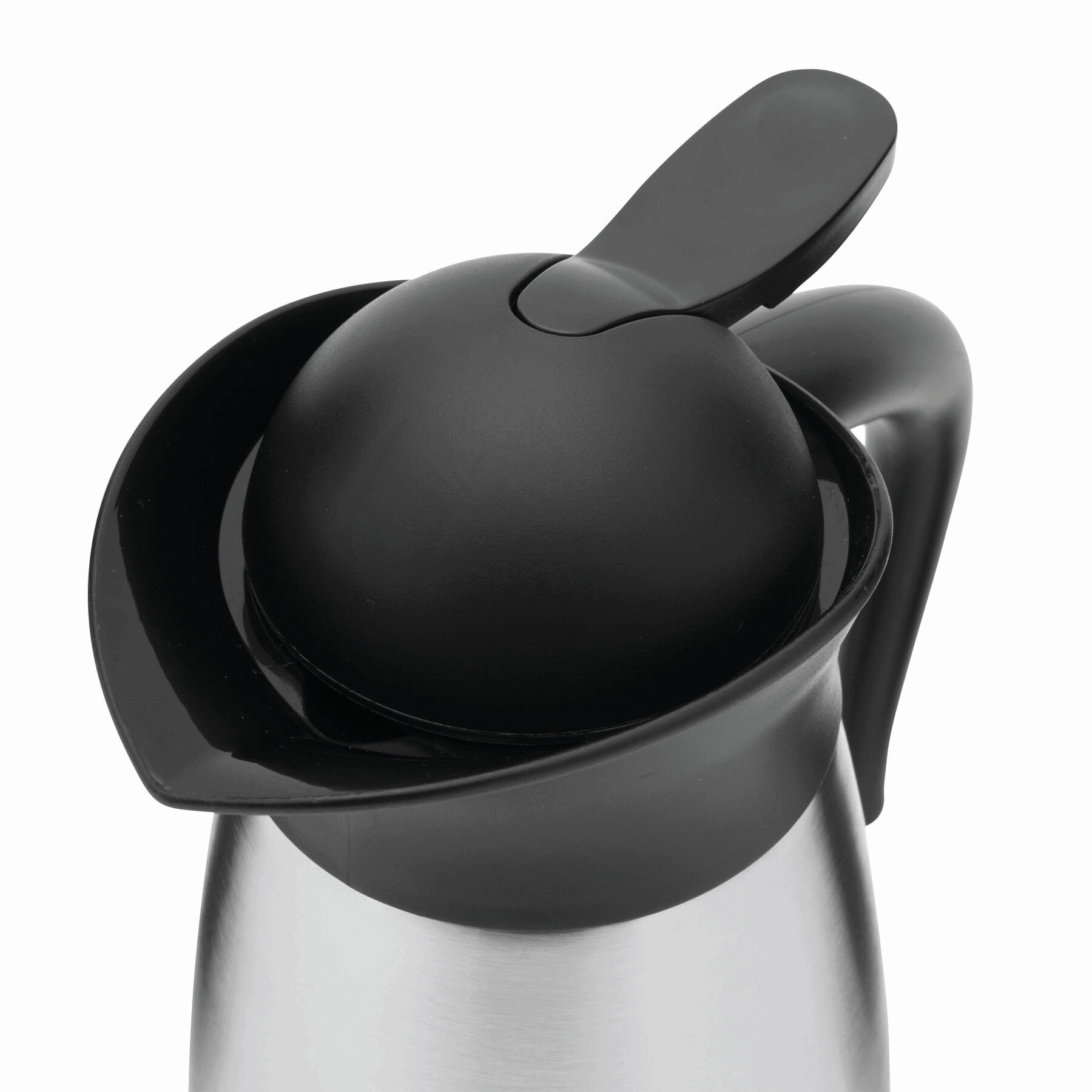 Dwuścienny dzbanek próżniowy AWAKE ze stali nierdzewnej. Nakrętka z przyciskiem do nalewania jedną ręką. Pojemność ok. 1 l. W pudełku upominkowym.