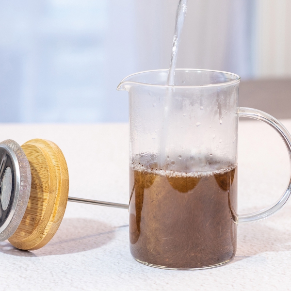 Zaparzacz do kawy lub herbaty, wykonany ze szkła borokrzemianowego z bambusową pokrywką. Dzbanek ma pojemność 600 ml.