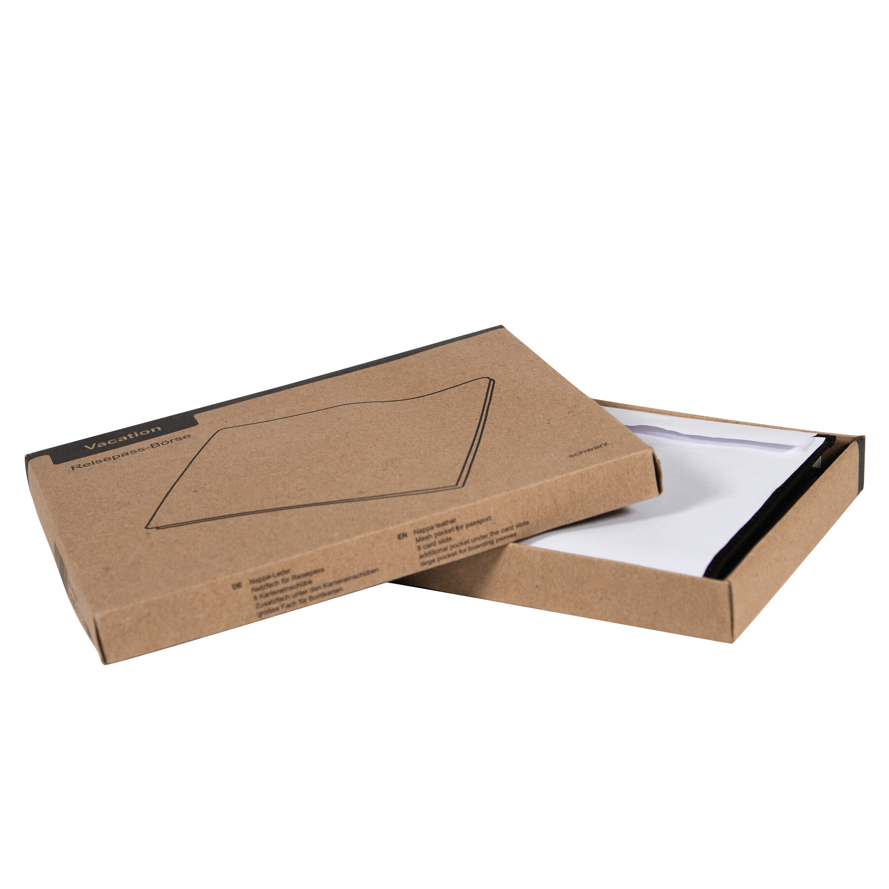 Etui na paszport VACATION. 9 przegródek wielkości karty kredytowej oraz duża kieszonka na paszport.