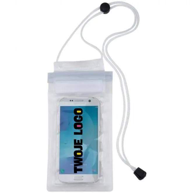 Etui na telefon z PVC, szczelnie zamykane, dodatkowo posiada sznurek do zawieszenia woreczka na szyi. Produkt w transparentnym kolorze.