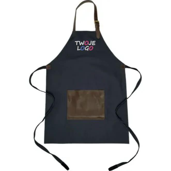 Fartuch kuchenny, płócienny, wodoodporny, regulowany pasek na szyję poprawiający komfort noszenia, przednia kieszeń wykonana z RPET PU, produkt wykonany z płótna 450 g/m² i PU