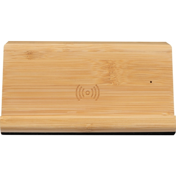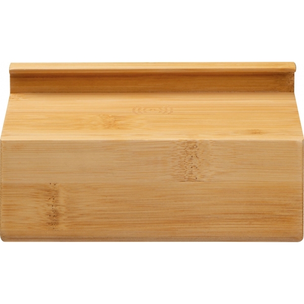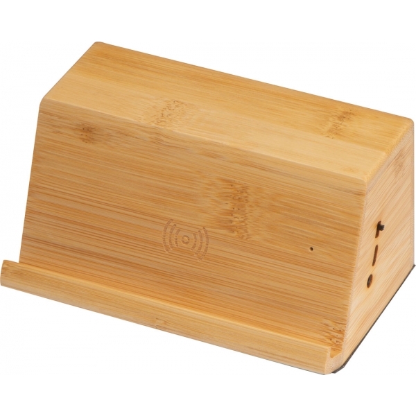Głośnik wykonany z bambusa, z baterią o pojemności 1200 mAh oraz ładowarką indukcyjną umożliwiającą naładowanie urządzeń z technologią QI.