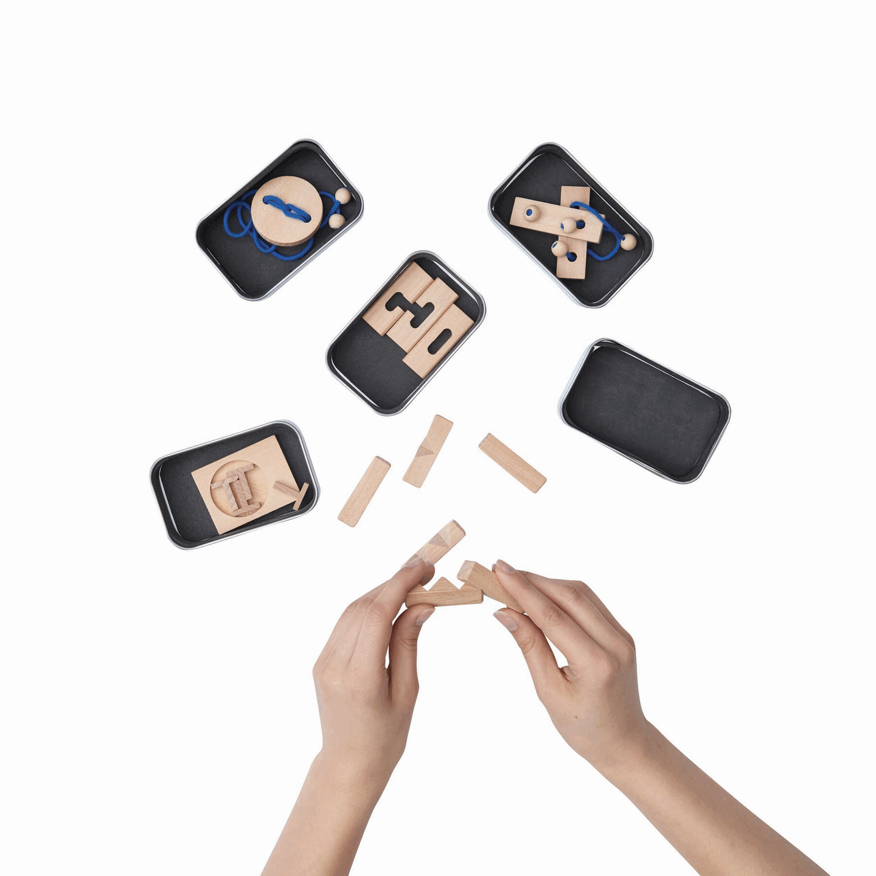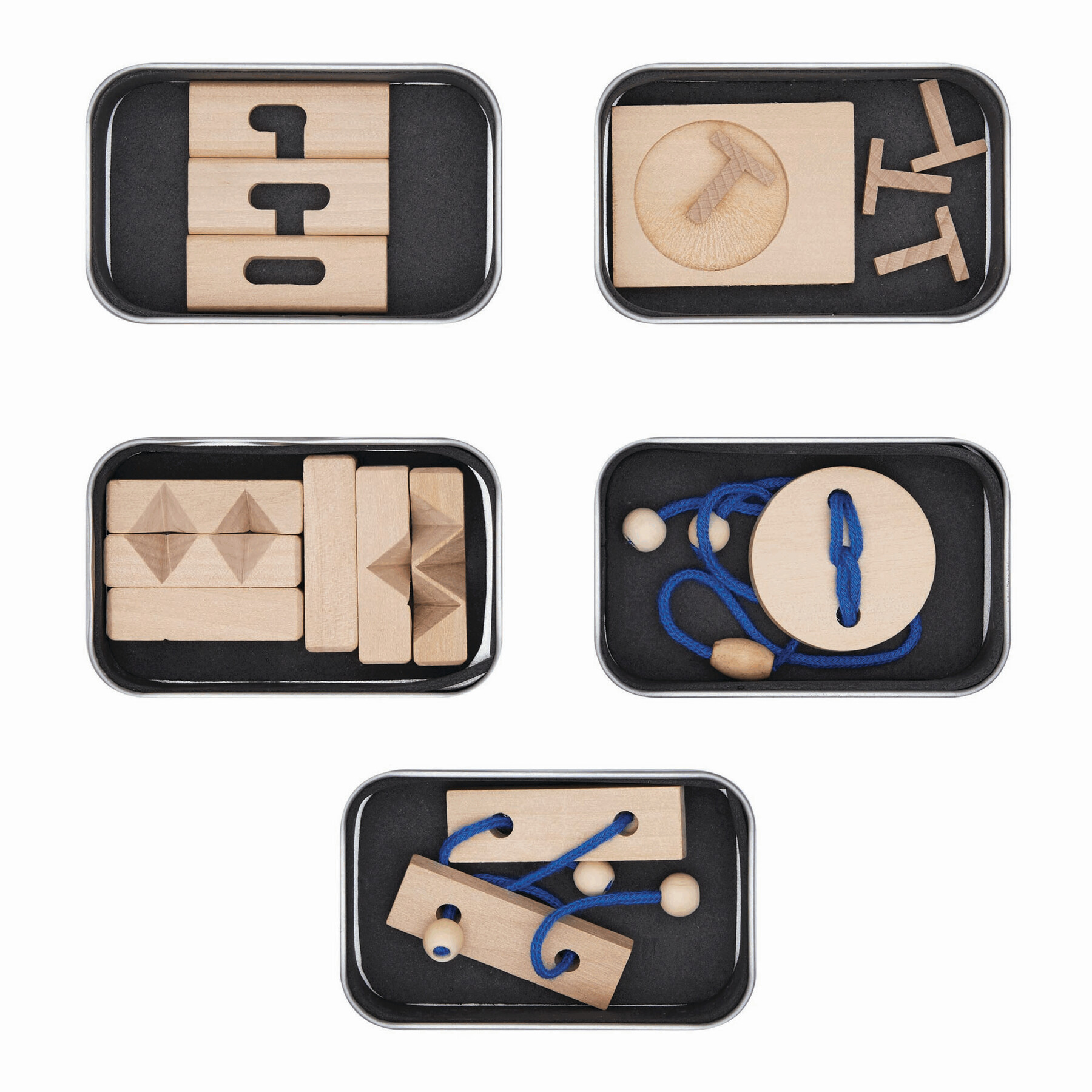 Gra logiczna THINK ABOUT w metalowym pudełku z papierową etykietą. Miks 5 gier.