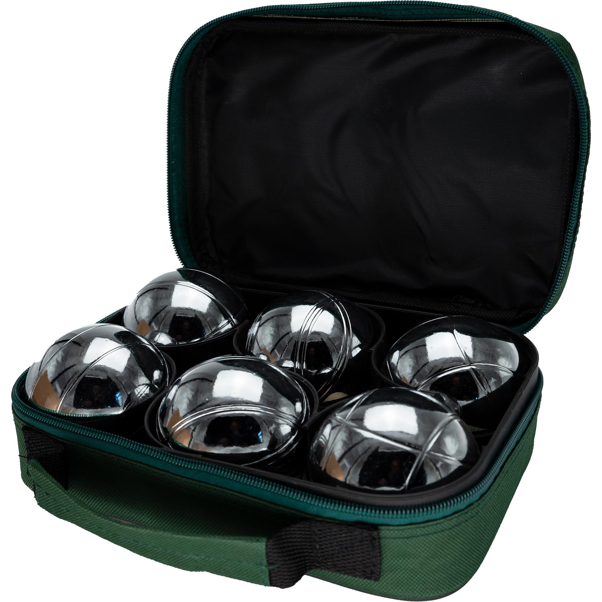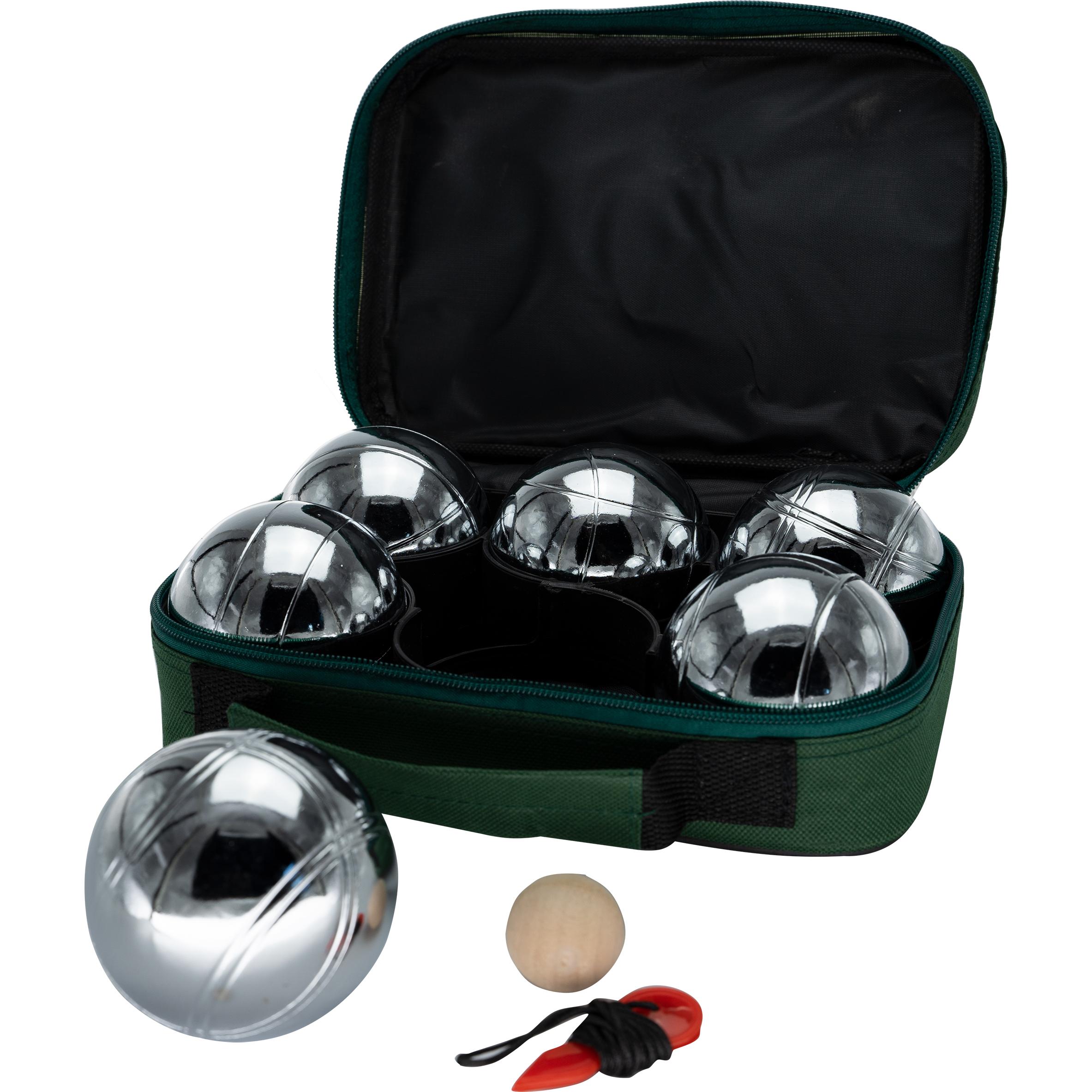 Gra w bule JACKSONVILLE – zestaw 6 metalowych kul, małą drewnianą kulkę oraz taśmę do mierzenia odległości. Całość zapakowana w nylonowe etui.