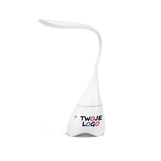 GRAHAME. Przenośna lampka biurkowa z głośnikiem i 5-godzinną żywotnością baterii z ABS pochodzącego z recyklingu (100% rABS) z naniesieniem logo