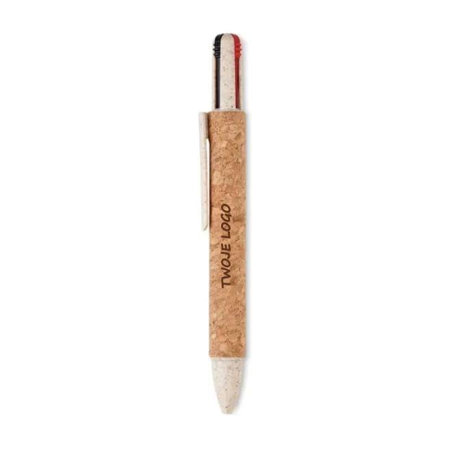Długopis z 4 kolorowymi wkładami, korkowym korpusem i końcówkami ze słomy pszenicznej (50%) i plastiku ABS (50%).