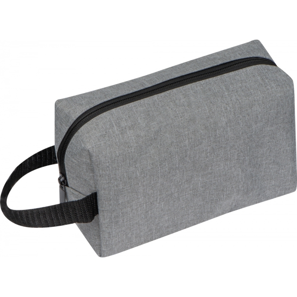 Kosmetyczka wykonana z poliestru pochodzącego z recyklingu, zamykana na zamek, z wygodnym uchwytem do przenoszenia.