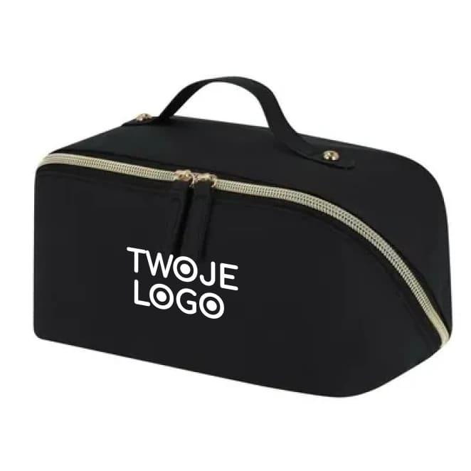 Kosmetyczka z główną przegrodą na zamek błyskawiczny i z uchwyt ułatwiający noszenie, produkt wykonany z PU