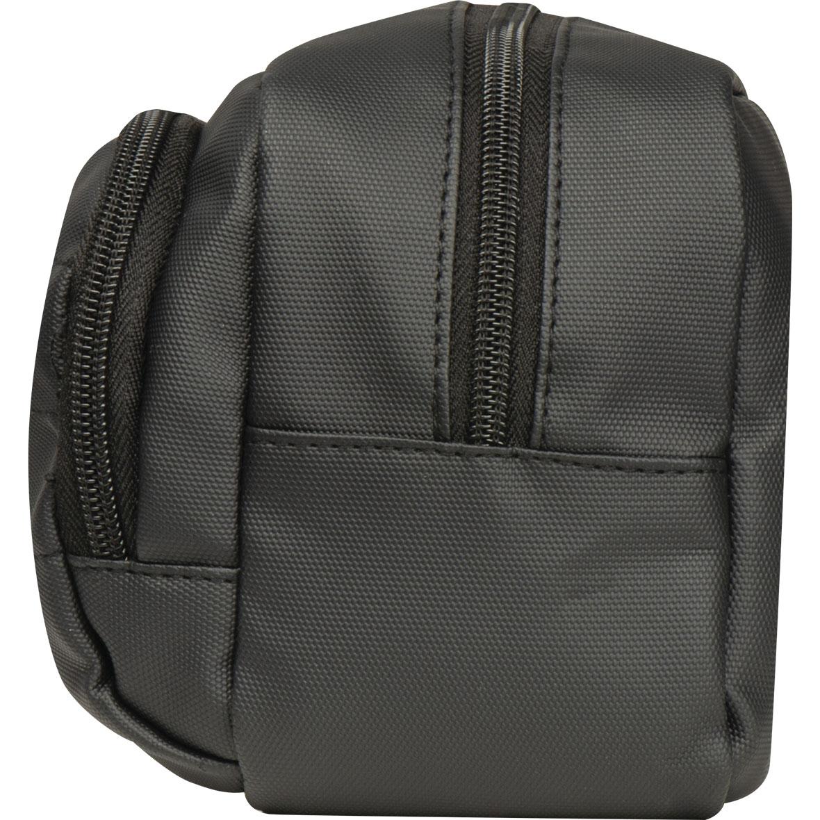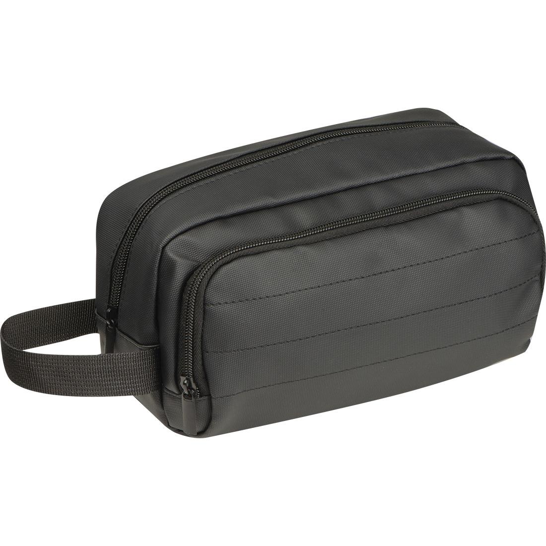 Kosmetyczka z PU, z dwoma kieszeniami zamykanymi na zamek oraz rączką do przenoszenia.