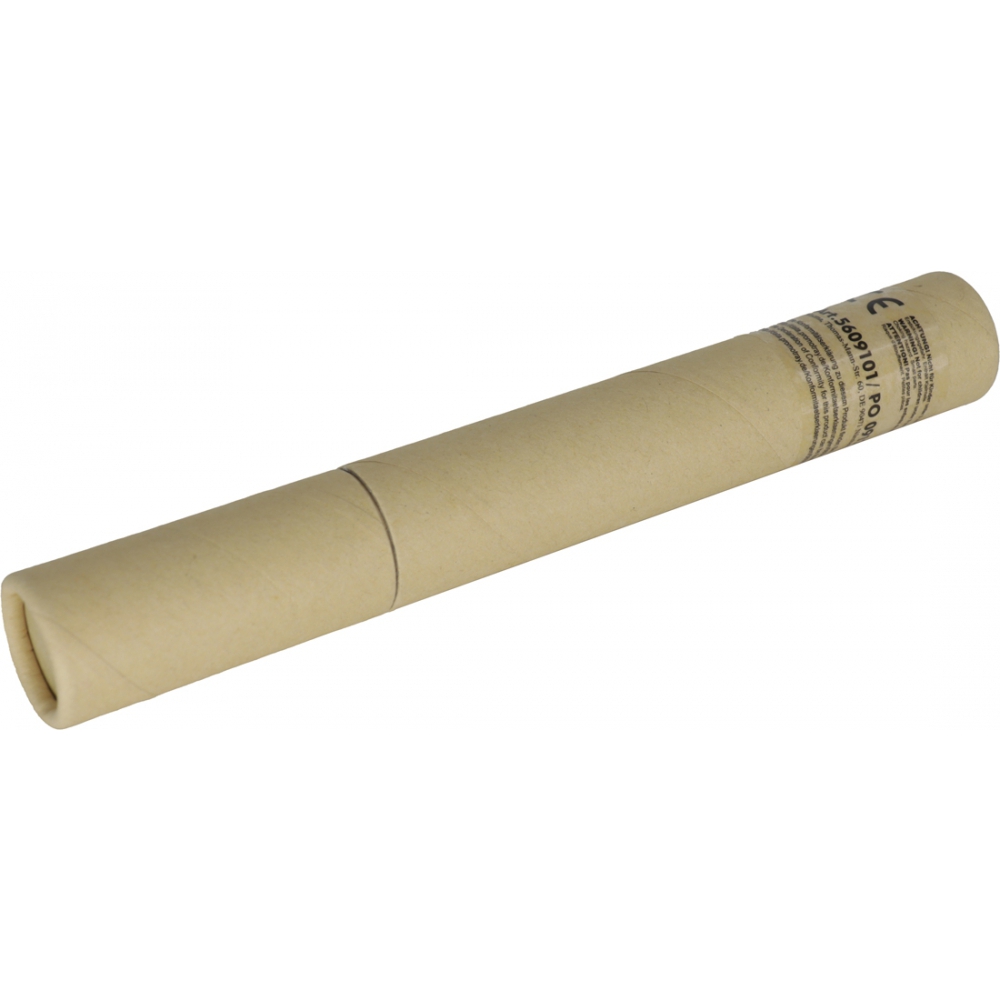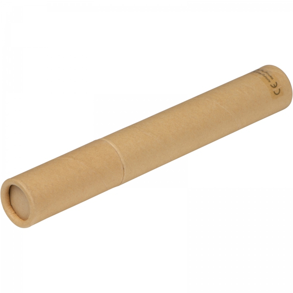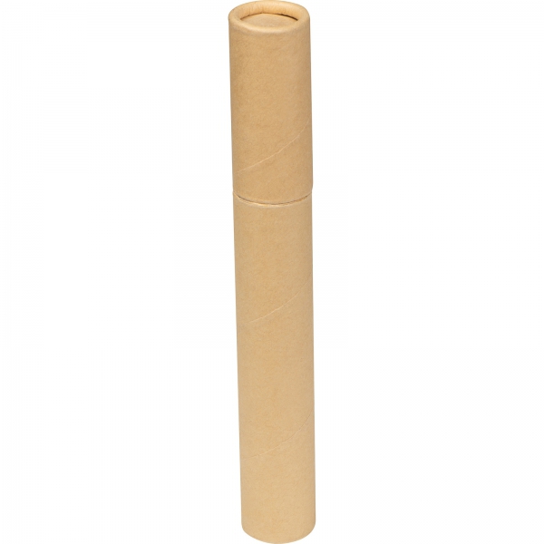 7 długich drewnianych kredek w okrągłym kartonowym pudełku.