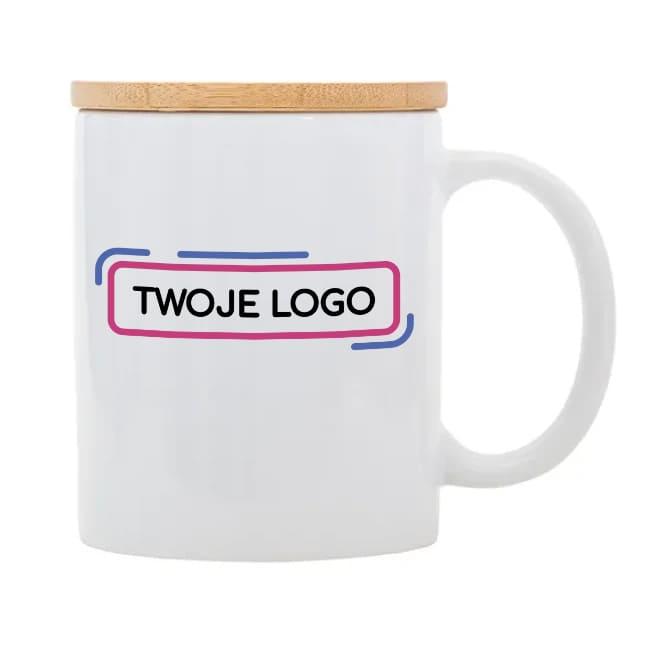 Ceramiczny kubek z bambusową pokrywką. Pojemność 330 ml.