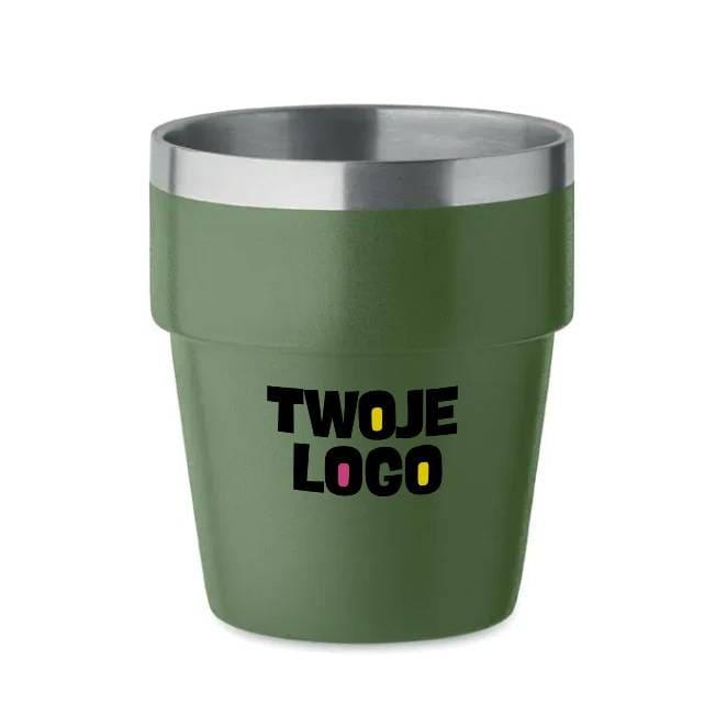 Kubek z podwójnymi ściankami ze stali nierdzewnej pochodzącej z recyklingu (90% stali nierdzewnej pochodzącej z recyklingu i 10% stali nierdzewnej). Pojemność: 250 ml.