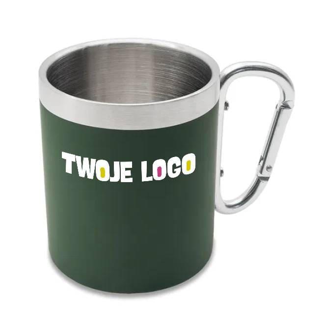 Kubek ze stali nierdzewnej o podwójnych ściankach, o przyjemnej w dotyku powierzchni. Kubek posiada uchwyt w formie karabińczyka. Pojemność: 300 ml.