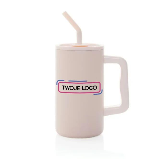Kubek termiczny 800 ml, posiada słomkę z silikonową nakładką, zakręcane wieczko, wykonany ze stali nierdzewnej z recyklingu, podwójne ścianki ze stali nierdzewnej z próżnią między ściankami, dzięki czemu zachowuje funkcje termosu i długo utrzymuje temperaturę nie oddając jej na zewnątrz, zalecane mycie ręczne