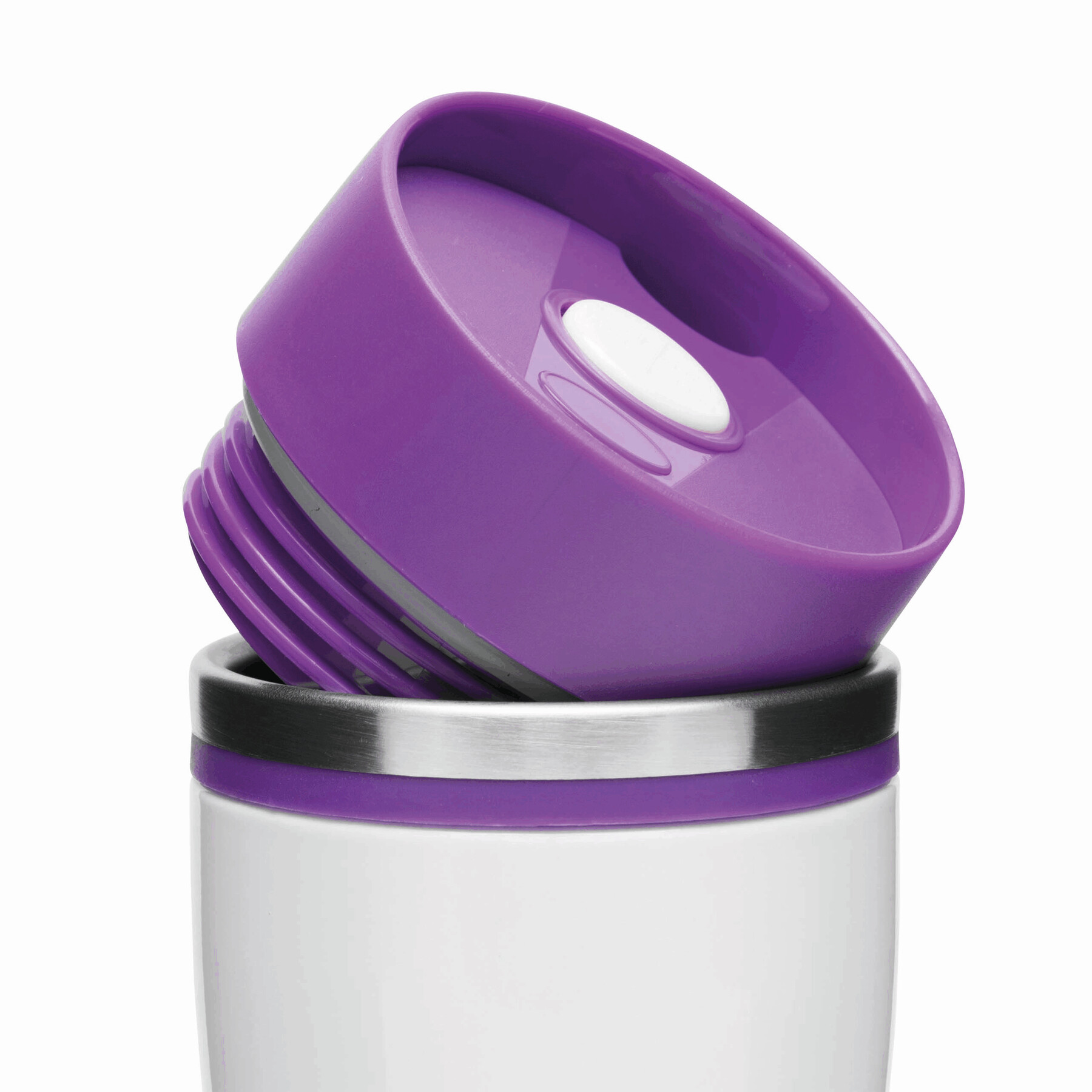 Kubek termiczny ARABICA wykonany ze stali nierdzewnej na zewnątrz i wewnątrz. Kolorowe odkręcane wieczko, przycisk OPEN/CLOSE i wbudowany otwór do picia, kolorowa, silikonowa tuleja i gumowy spód dla lepszej przyczepności, pojemność ok. 400 ml.