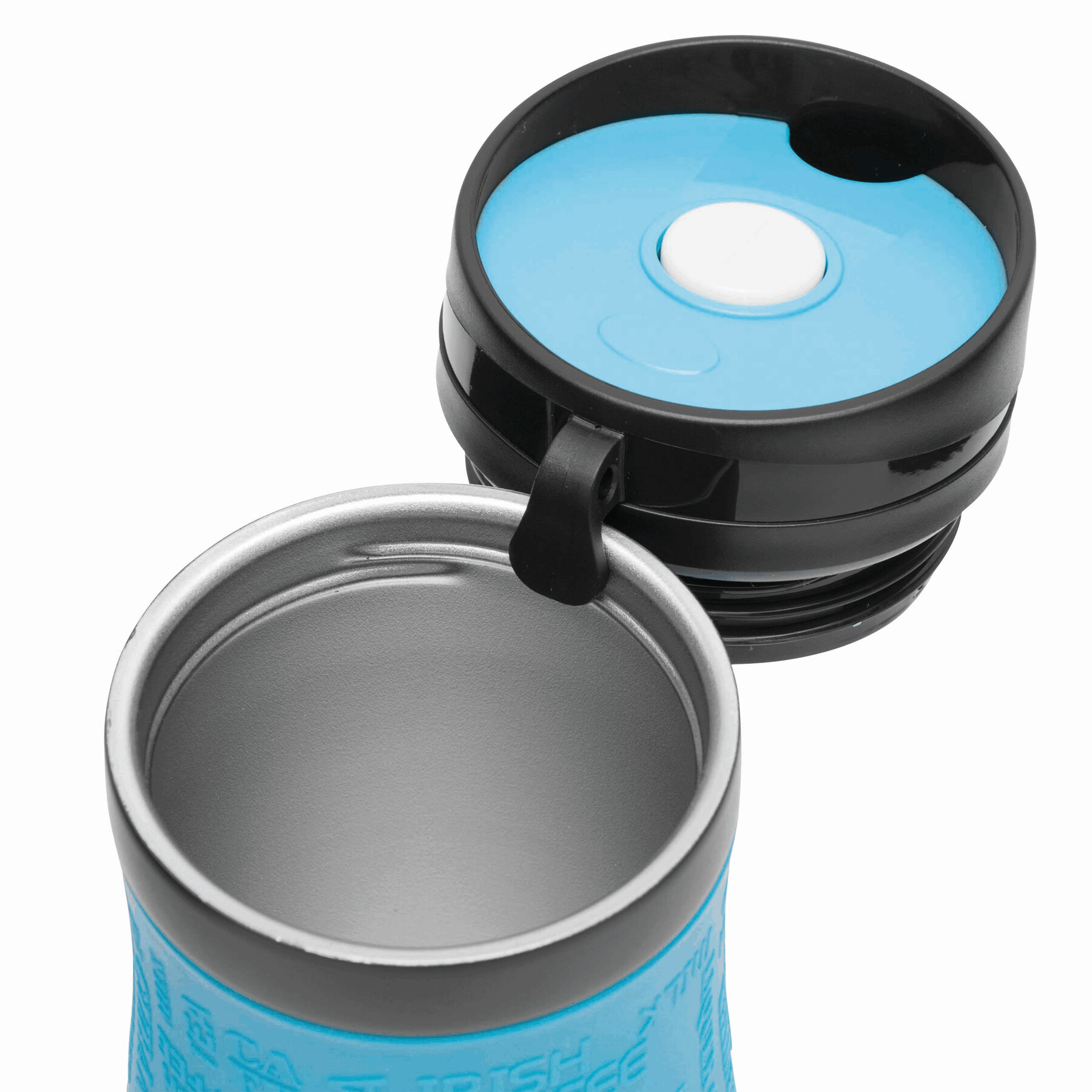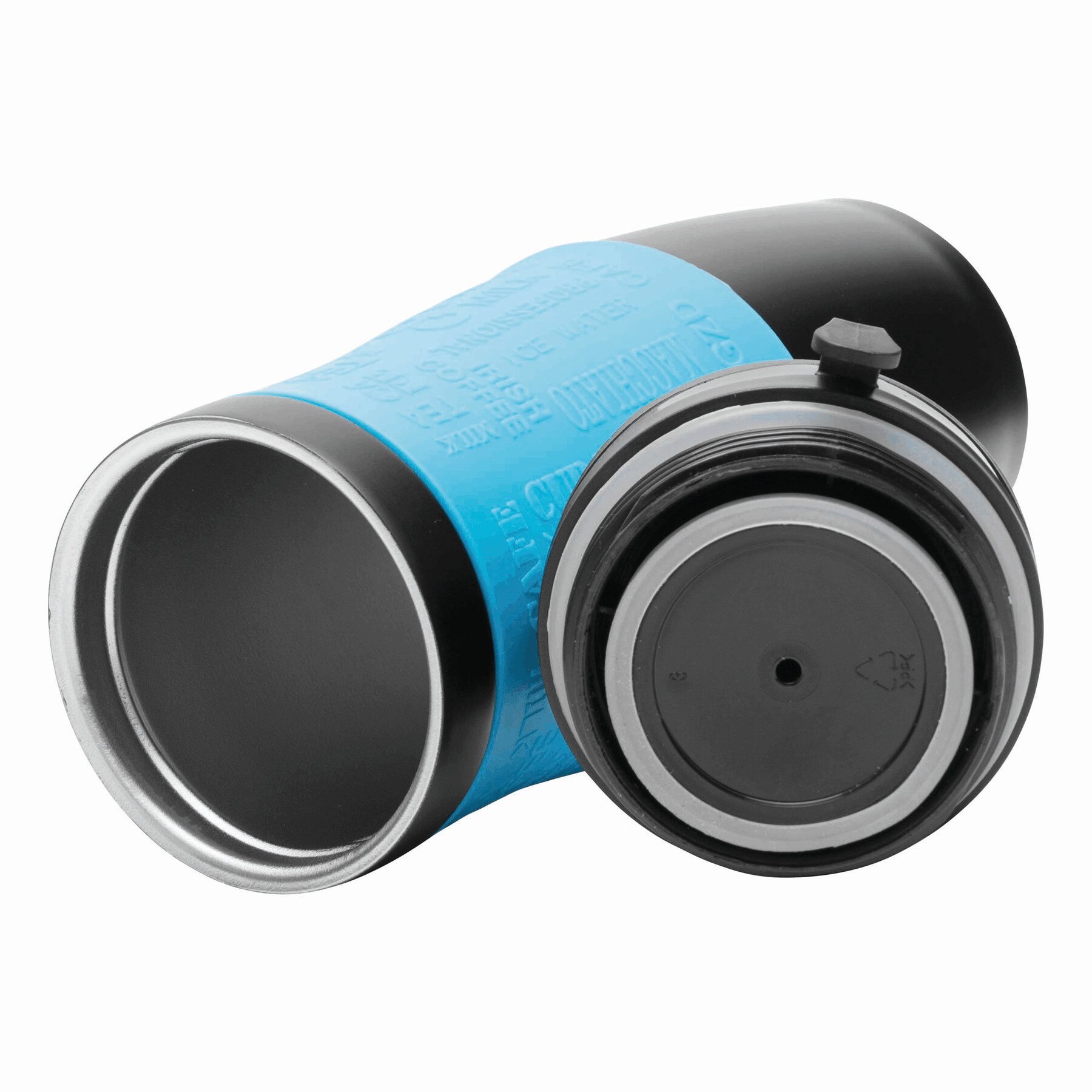 Kubek termiczny GOLDEN DREAM wewnątrz i na zewnątrz ze stali nierdzewnej. Plastikowe odkręcane wieczko, przesuwane zamknięcie wbudowanego otworu do picia, w wieczku wbudowany haczyk do zawieszania, kolorowa, gumowana, silikonowa nakładka dla lepszej przyczepności, ok. 380 ml pojemności, pakowany w pudełko.