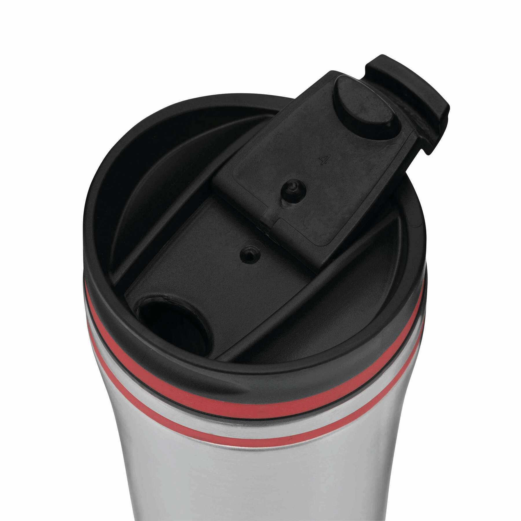 Kubek termiczny LIBERICA z podwójnymi ściankami, wewnątrz i na zewnątrz wykonany ze stali nierdzewnej, z zakrętką z zabezpieczeniem, zintegrowanym otworem do picia i kolorowymi ozdobami, pojemność ok. 400 ml.