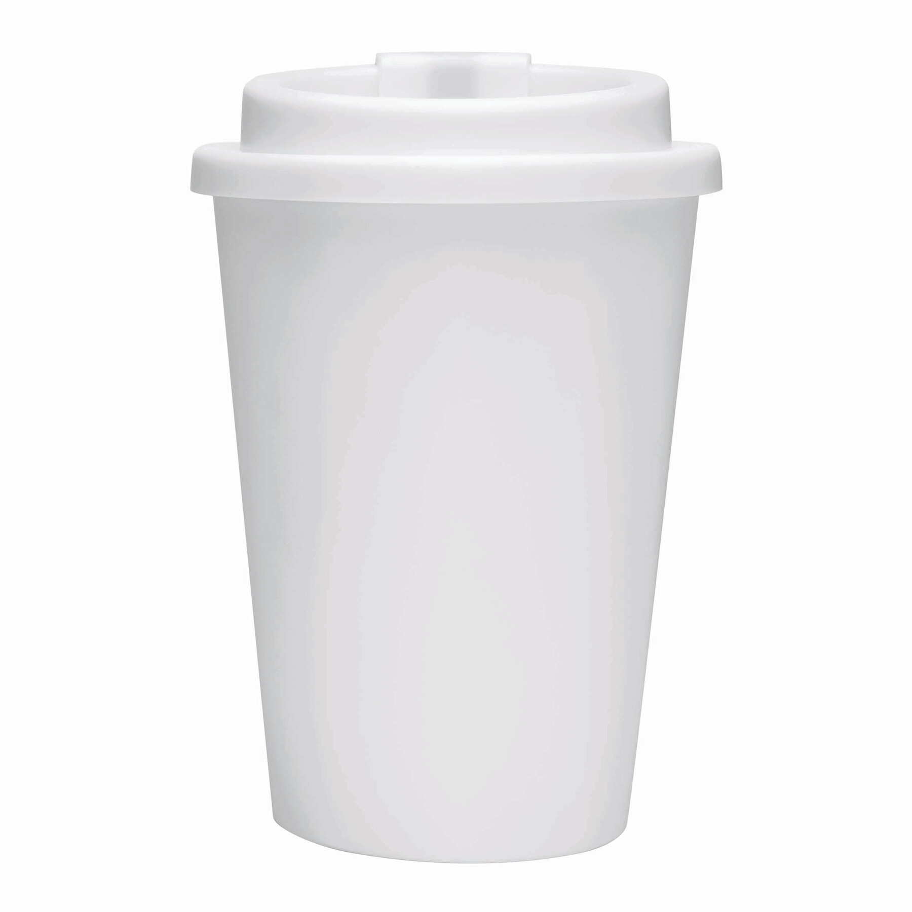 Kubek termiczny RE-USE, dwuścienny: bezpieczna zakrętka z silikonową uszczelką i zintegrowanym otworem do picia na zatrzask, pojemność ok. 300 ml, utrzymuje ciepło do 2 godzin i zimno do 4 godzin.