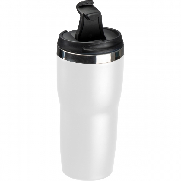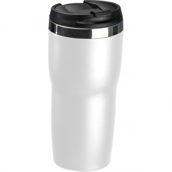 Kubek termiczny o pojemności 400 ml, wykonany ze stali nierdzewnej, z podwójnymi ściankami.
