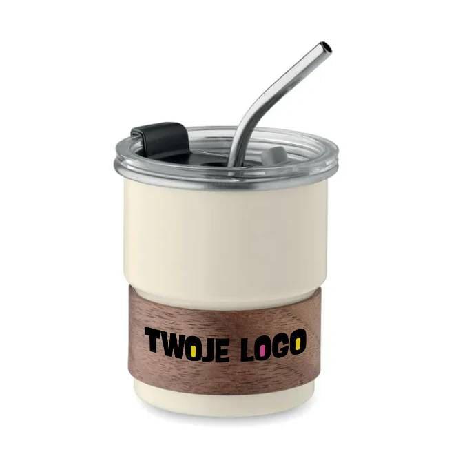 Jednościenny kubek z recyklingowanej stali nierdzewnej (90% stali nierdzewnej z recyklingu i 10% stali nierdzewnej) z odłączanym uchwytem z drewna akacjowego i słomką ze stali nierdzewnej. Szczelna pokrywka z otworem na słomkę i otworem do picia. Pojemność: 260 ml. Ponieważ jest to kubek z pojedynczą ścianką, może dochodzić do wymiany ciepła.