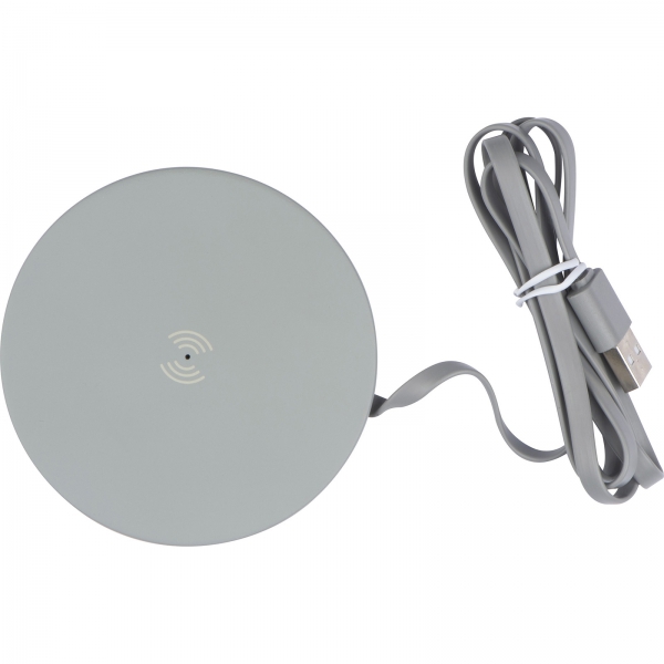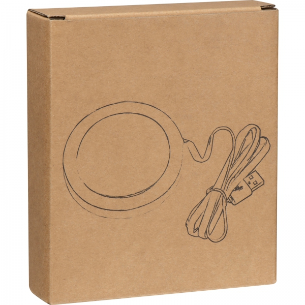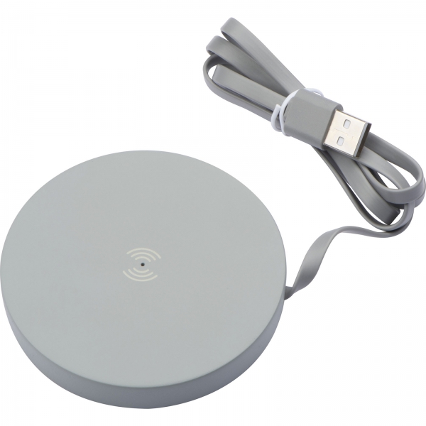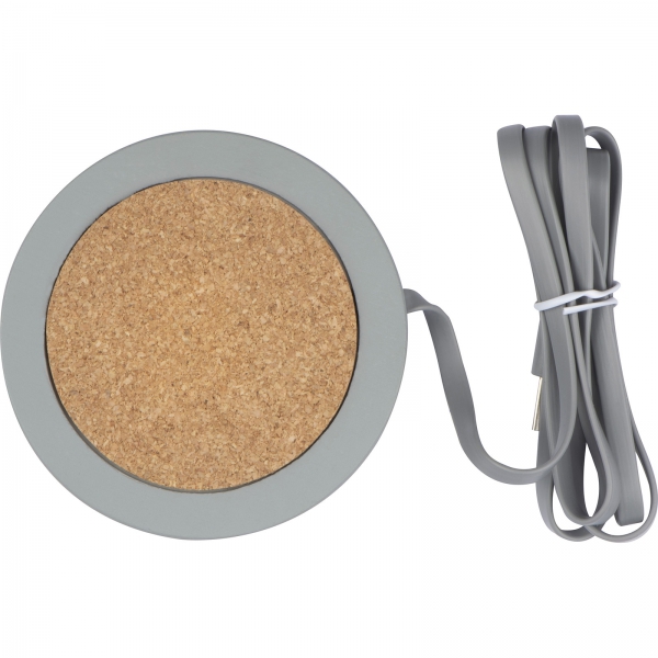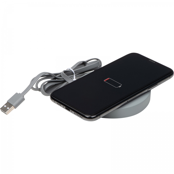 Ładowarka bezprzewodowa w cementowej obudowie z korkową wkładką. Kompatybilna z telefonami z systemem QI.