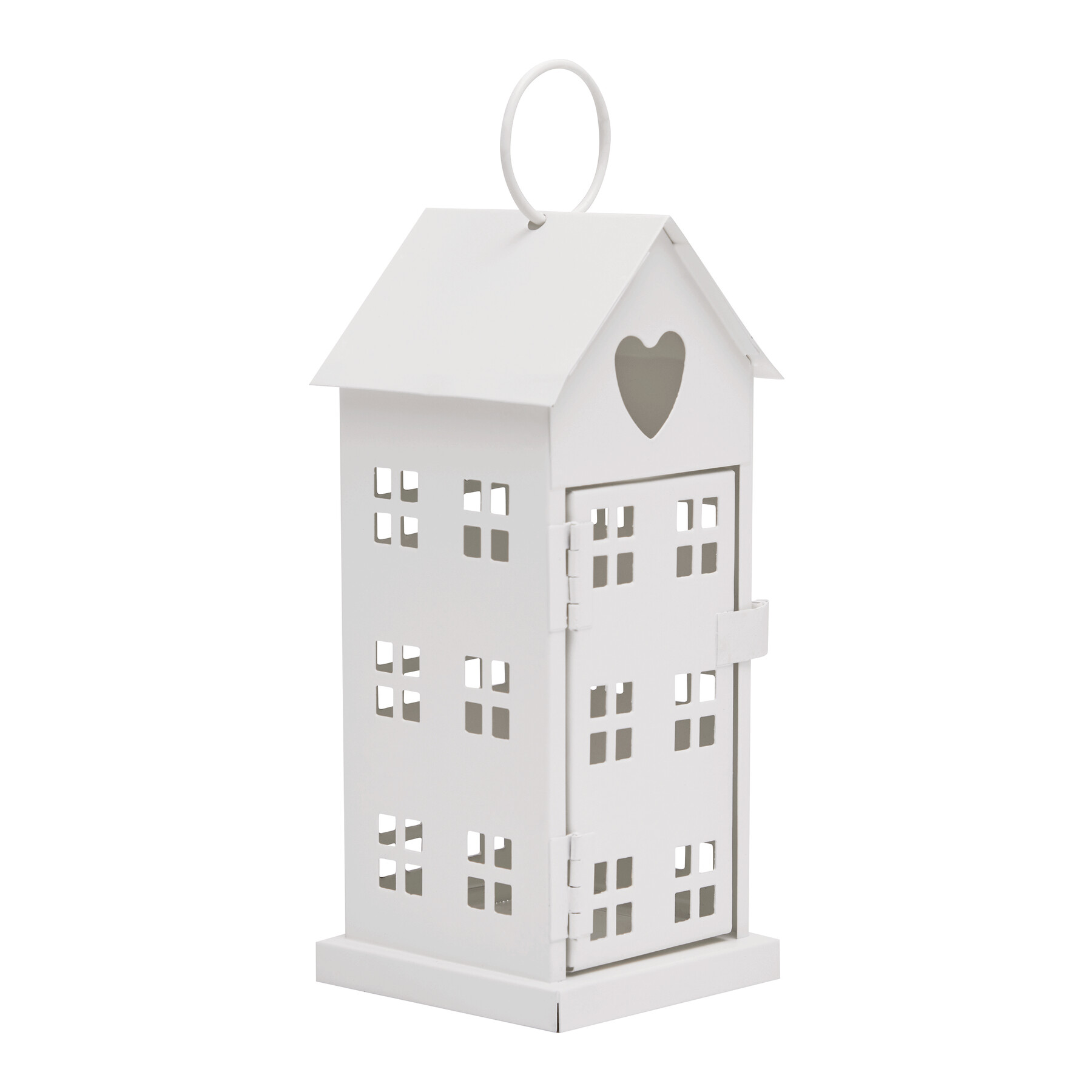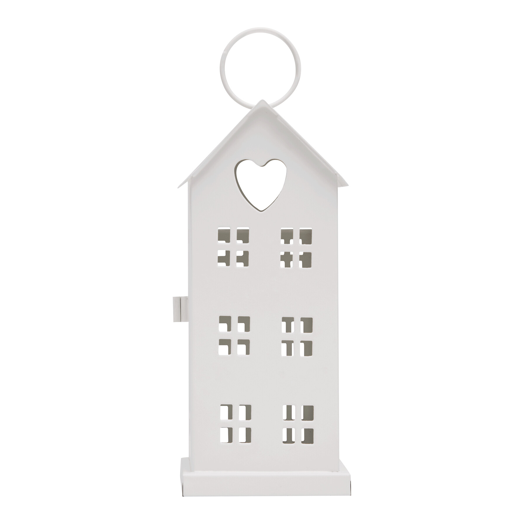 Lampion SHINY LIGHT. Metalowy domek z 6 oknami po każdej stronie oraz zawieszką na dachu. Lampion ma otwierane drzwiczki, dzięki temu można go wypełnić świeczkami lub lampkami (nie są one dołączone do zestawu).