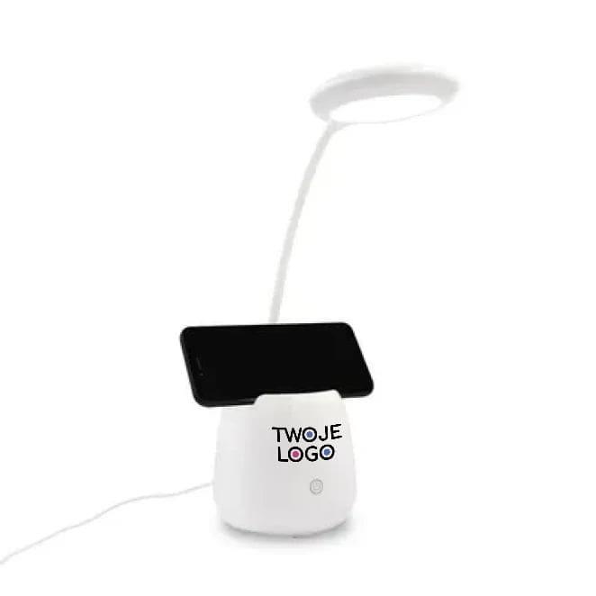 Lampka na biurko, głośnik bezprzewodowy 3W, stojak na telefon, pojemnik na przybory do pisania | Asar z logo firmy