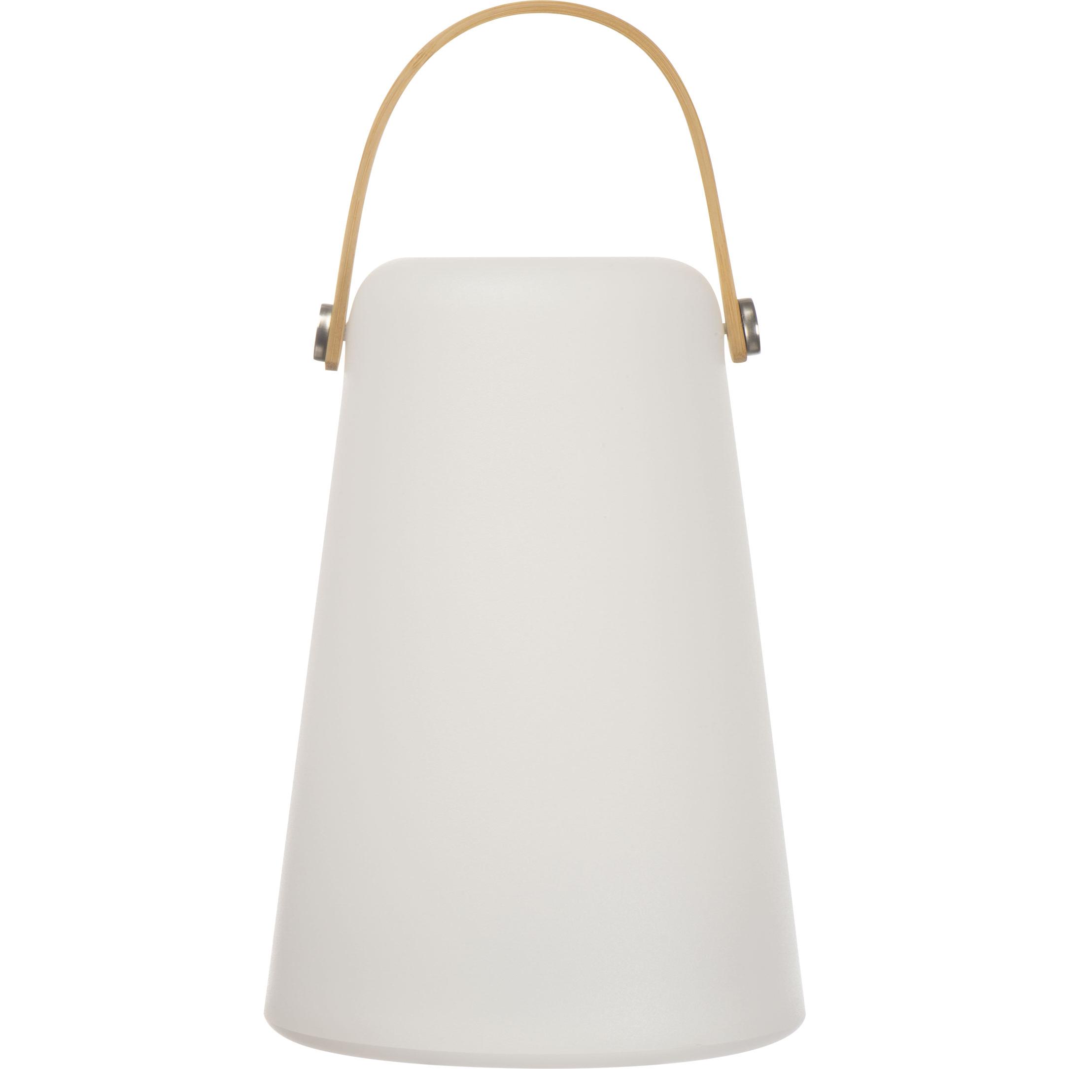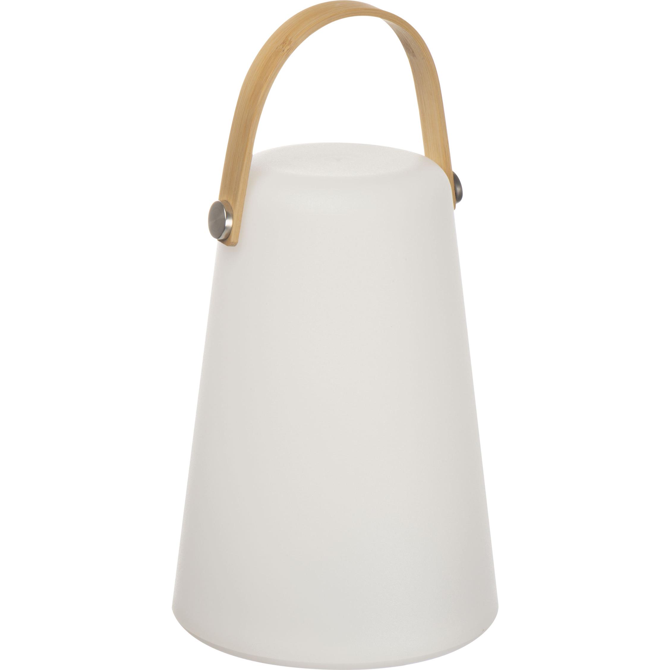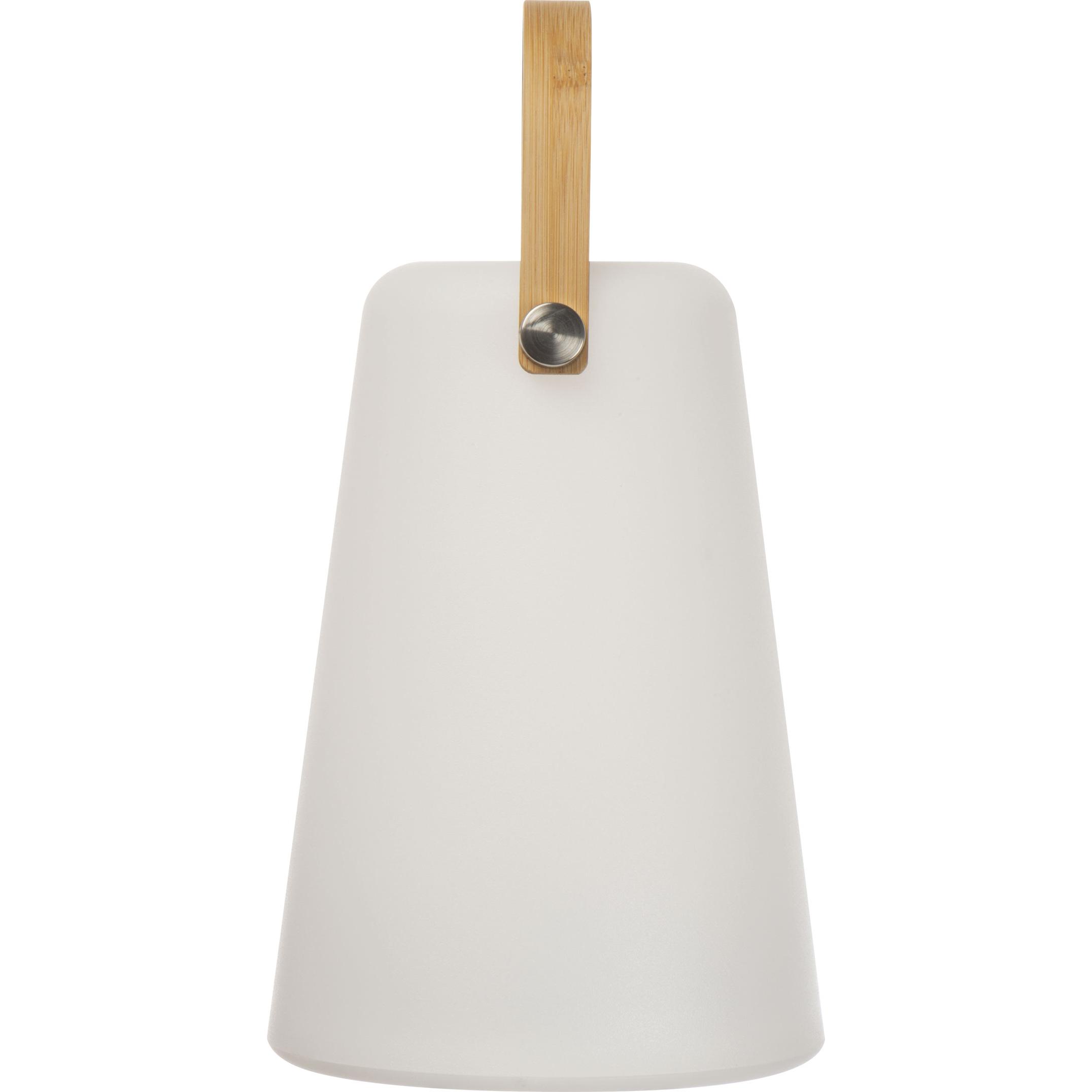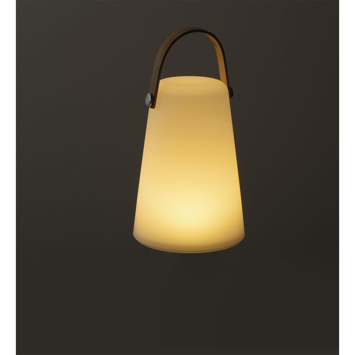 Stylowa lampka o ciepłym białym świetle, z baterią o pojemności 800 mAh i rączką do przenoszenia.