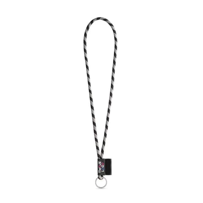 Personalizowana smycz Lanyard, długa smycz sznurkowa wykonana z poliamidu, w 17 standardowych kolorach dostępnych do personalizacji. Zawiera następujące akcesoria i dodatki: czarna gumka, etykieta sublimacyjna 43 x 15 mm i kółka ø32 mm. ø7 x 470 mm
