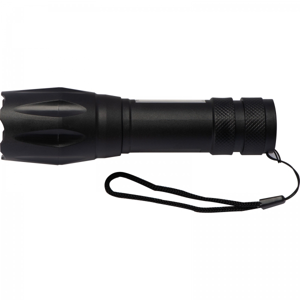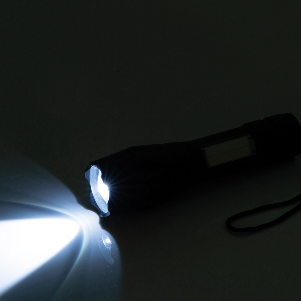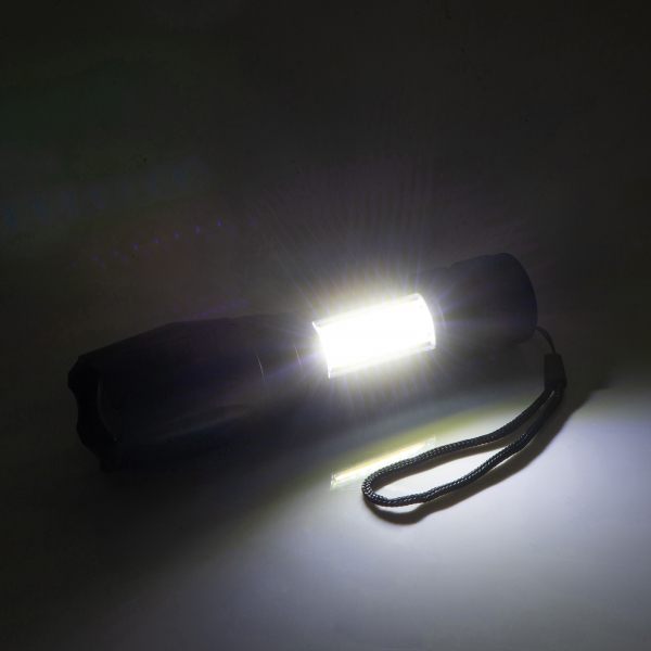 Latarka z baterią o pojemności 600 mAh i diodą COB. Kabelek do ładowania w zestawie.
