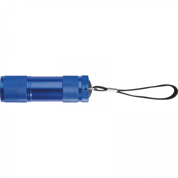 Latarka z 9 diodami LED dającymi bardzo jasne światło. Wykonana z aluminium i zapakowana wraz z trzema bateriami w kartonik.