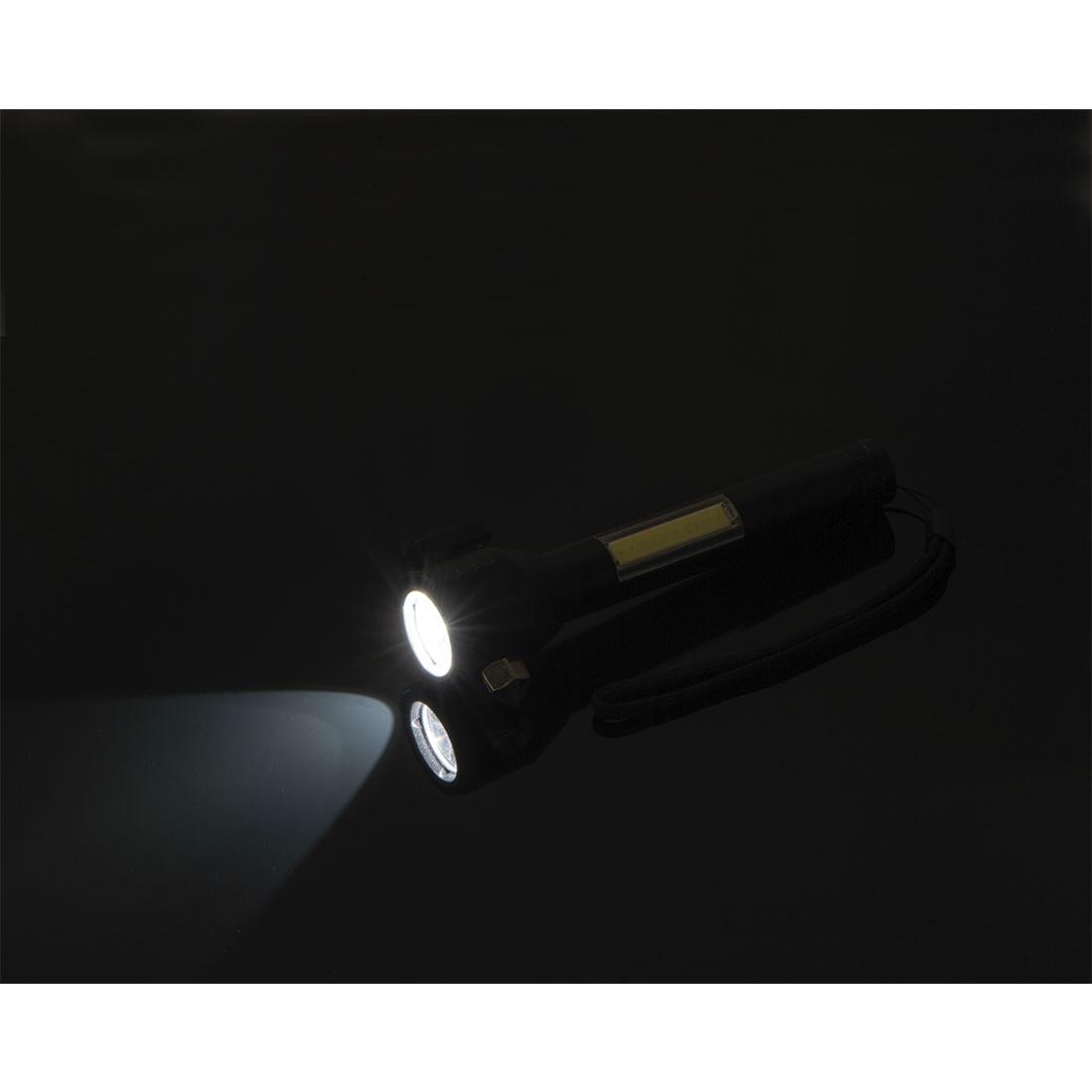 Latarka o mocy 3W/120 lumenów oraz bocznym światłem o mocy 3W/250 lumenów, z baterią o pojemności 500 mAh, ładowaną na USB typu C. Dodatkowo latarka posiada magnes, młotek awaryjny do szyb oraz przecinak do pasów bezpieczeństwa.