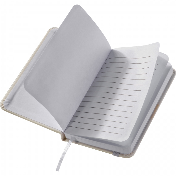 Notes (160 stron) w linie, w twardej oprawie z PU. Posiada tasiemkową zakładkę oraz gumkę umożliwiającą zamknięcie.
