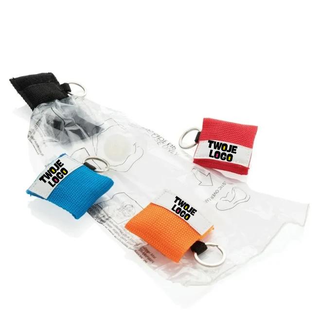 Maska do resuscytacji, brelok w pokrowcu na rzep, spełnia wymagania normy EN13485:2003, ślad węglowy produktu: 0,18 kg CO2