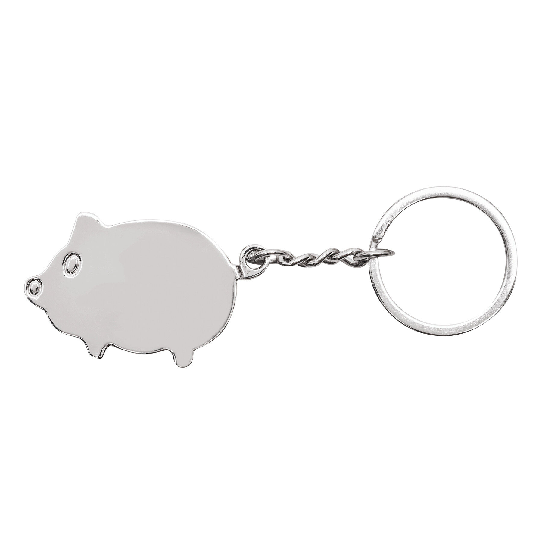 Metalowy brelok CHAMBA w kształcie świnki. Z żetonem do wózka sklepowego. Znakowanie na zawieszce lub na żetonie.