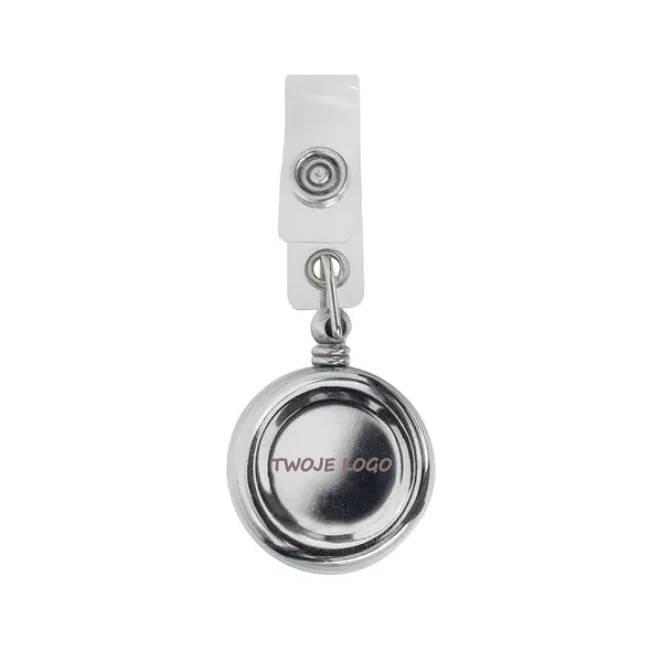 Metalowy ski-pass z klipem z tyłu. Długość linki 80 cm.