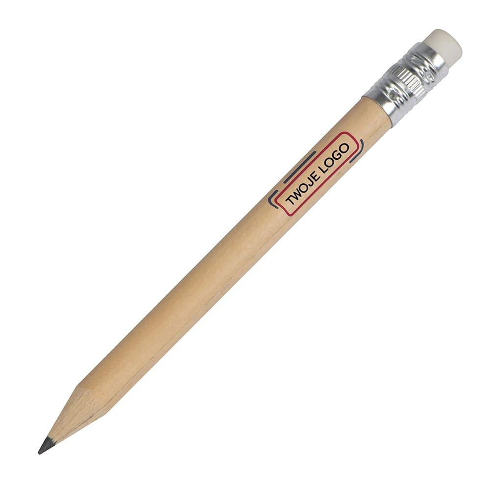 Mały ołówek z białą gumką do zmazywania, zatemperowany.
