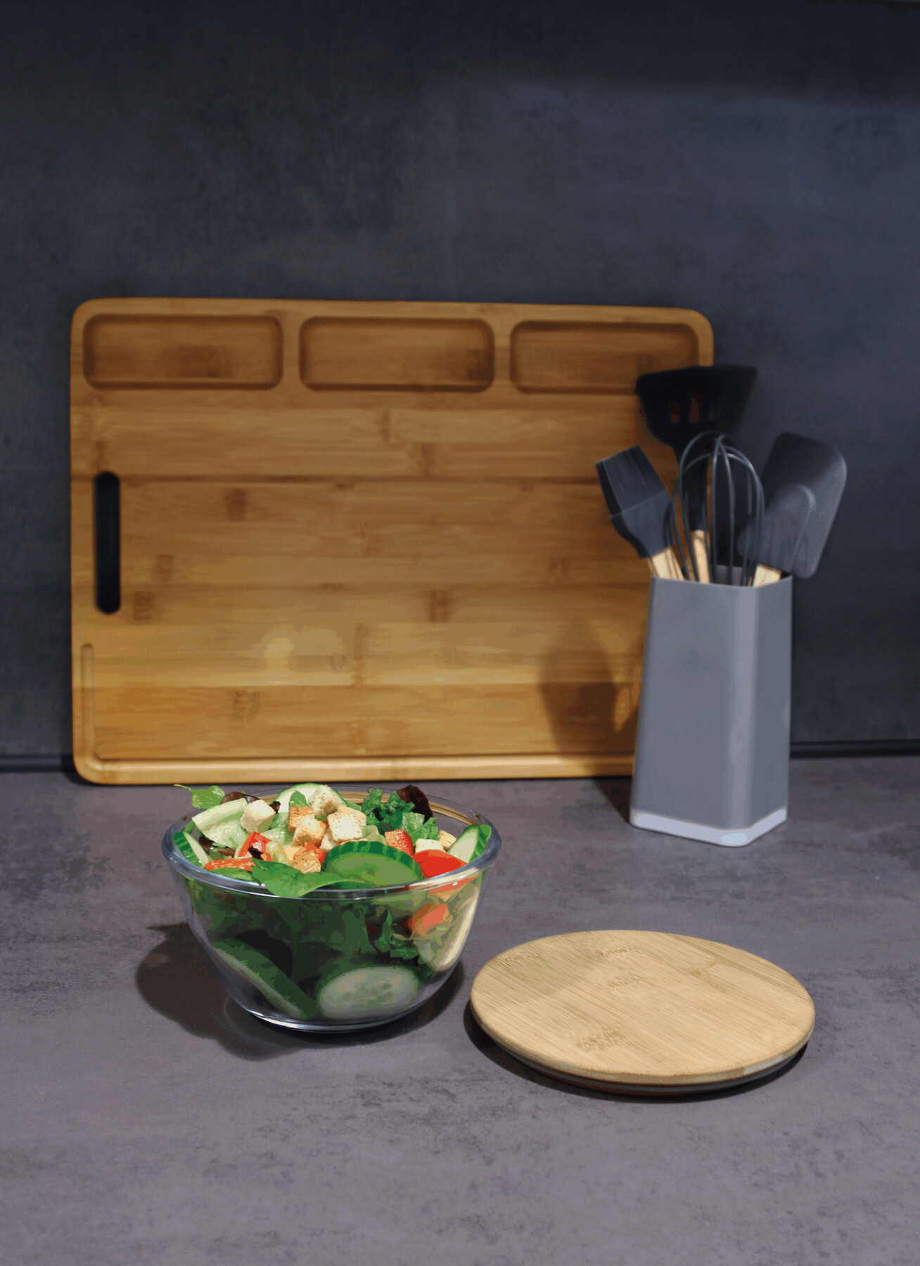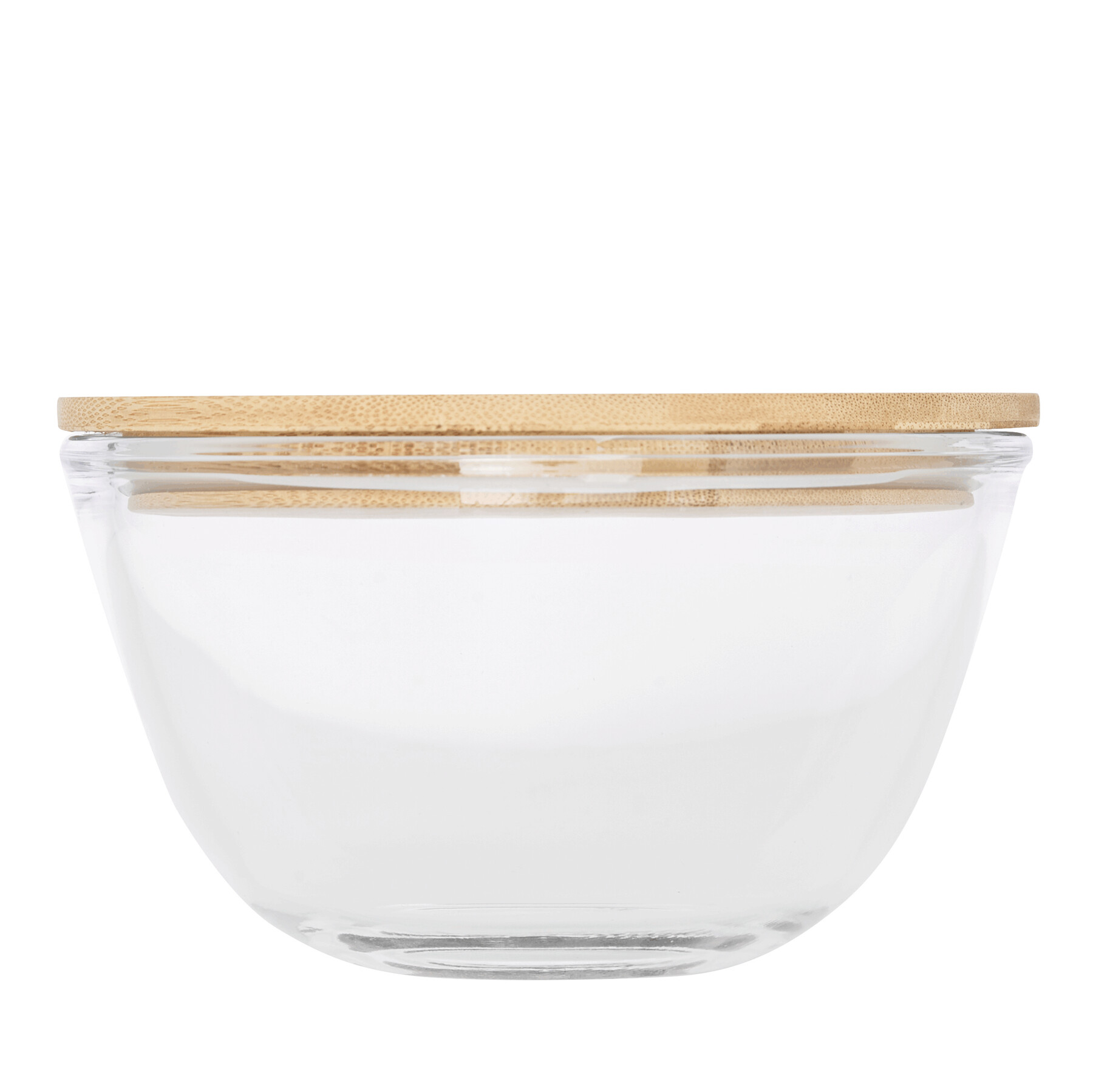 Miska szklana FRESH LUNCH o pojemności ok. 800 ml. Z pokrywką z bambusa. Odpowiednia do kuchenki mikrofalowej lub piekarnika. Można myć w zmywarce.