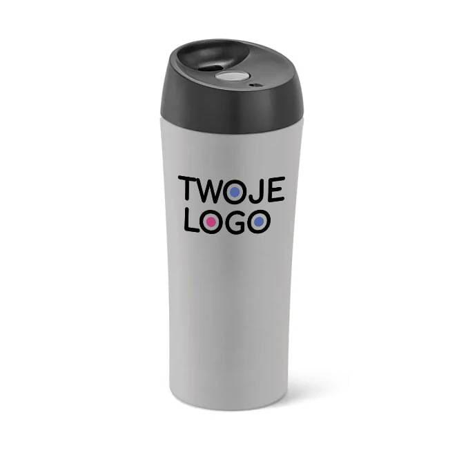 MONARDA. Kubek podróżny 470 ml ze stali nierdzewnej i PP z nadrukiem na zamówienie