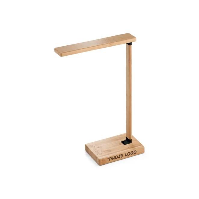 MOREY. Składana lampka biurkowa z superszybką ładowarką bezprzewodową 15 W z bambusa z logo