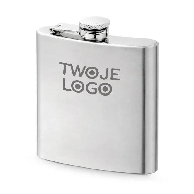 Butelka kieszonkowa ze stali nierdzewnej o pojemności do 180 mL. Dostarczany w pudełku. 100 x 110 x 25 mm